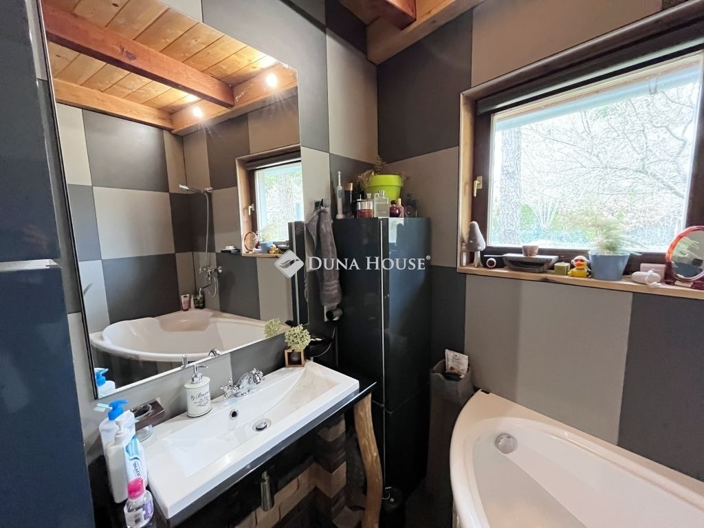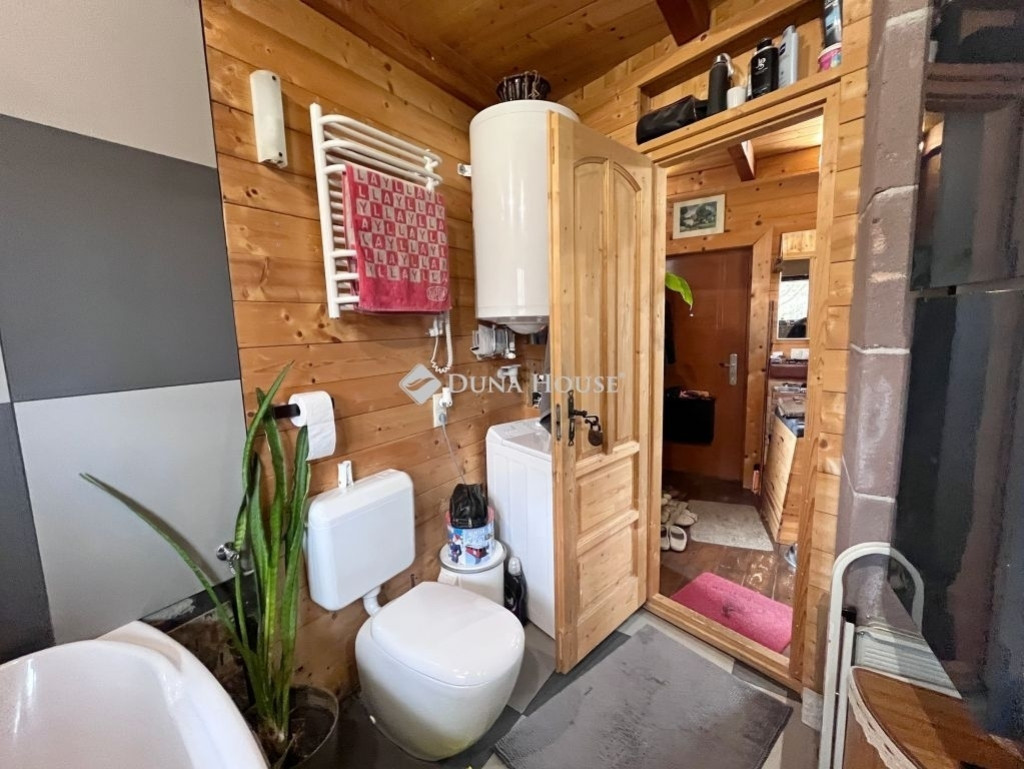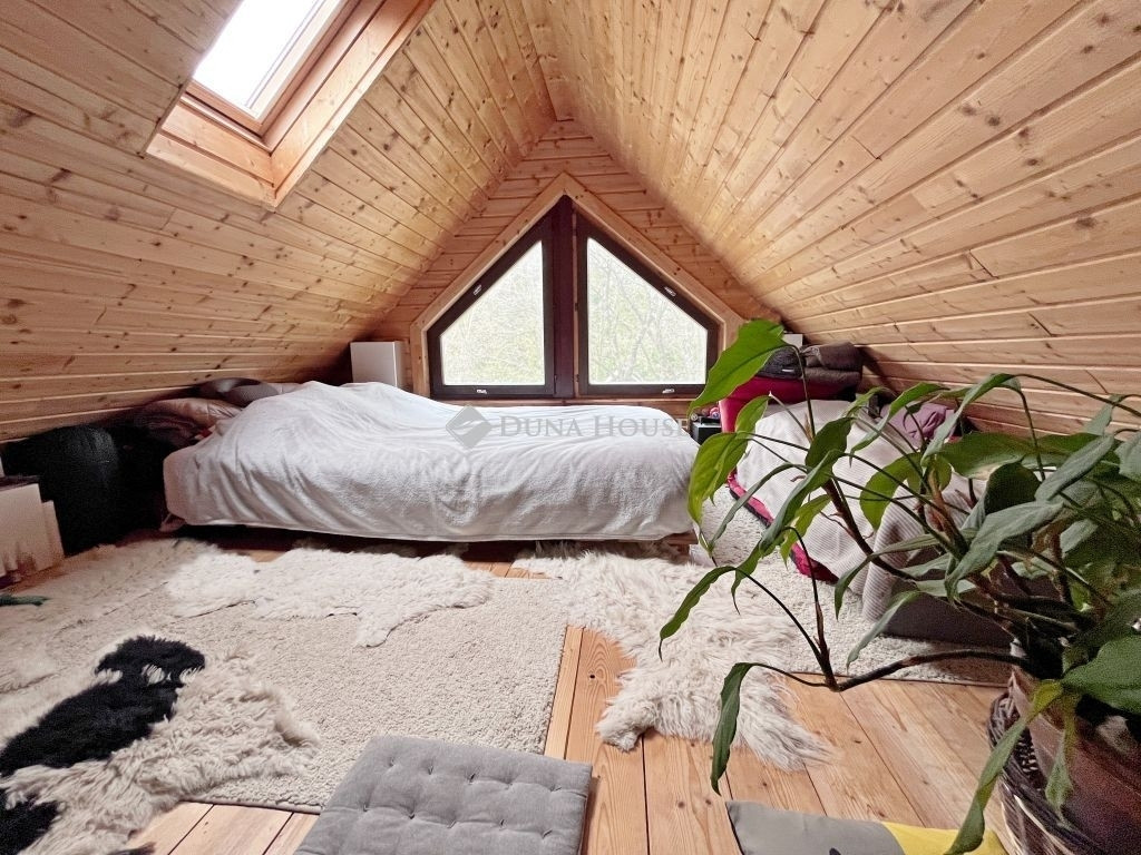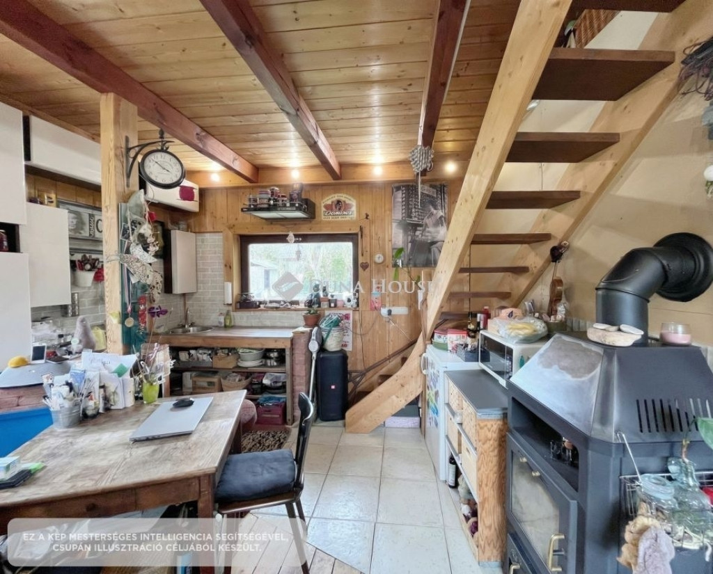 Parkerdő, ahol az ember és a természet találkozik.Állandó lakhatásra is alkalmas kis ház eladó Szombathely-Parkerdőben.A Parkerdő séi, csendes és természetközeli részén kínálunk megvételre két egymás mellett elhelyezkedő kertet (összesen 1106 m2) , állandó lakhatásra is alkalmas, könnyűszerkezetes, szigetelt kompakt kis házzal. Az ingatlan praktikus elrendezésű: az alsó szinten nappaliétkezőkonyha egy légtérben, valamint egy fürdőszoba WC-vel került kialakításra. A tetőtérben hálószoba és egy gardróbrész kapott helyet.Az alsó szint összesen 27,64 m2, a felső szint brutto 21 m2.A ház mögött egy hangulatos, nagy méretű fedett kerti kiülő biztosít kellemes helyszínt a pihenéshez és kikapcsolódáshoz.A kert gondozott, szépen karbantartott, számos növény, díszcserje és gyümölcsfa található rajta, ideális választás kertészkedéshez vagy természetközeli életvitelhez. **Műszaki jellemzők:*** Külső falszerkezet: 15 mm OSB és 25 mm deszkapanel, közte 25 cm szálas hőszigetelés hőtükrös fóliával.* Belső falszerkezet: 12 mm OSB + 25 mm gyalult deszka burkolat* Külső hőszigetelés: 12 cm XPS* Tető héjazat: bitumenzsindely, tető szigetelés: 20 cm szálas hőszigetelés, 16 mm lambéria * Kamerarendszer * Villany: 2×32 Amper * Víz: bevezetve * Fűtés: hűtő-fűtő klíma és egy 10kW-os fatüzelésű kandalló * Kémény: hőszigetelt Schiedel * Melegvíz: villanybojler * Fürdőszobában nagyméretű kádAz ingatlan ideális választás állandó otthonnak, hétvégi háznak, vagy befektetésnek is.További információért és megtekintés egyeztetéséért keressen bizalommal!