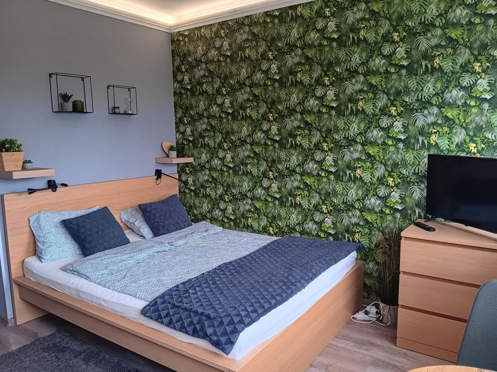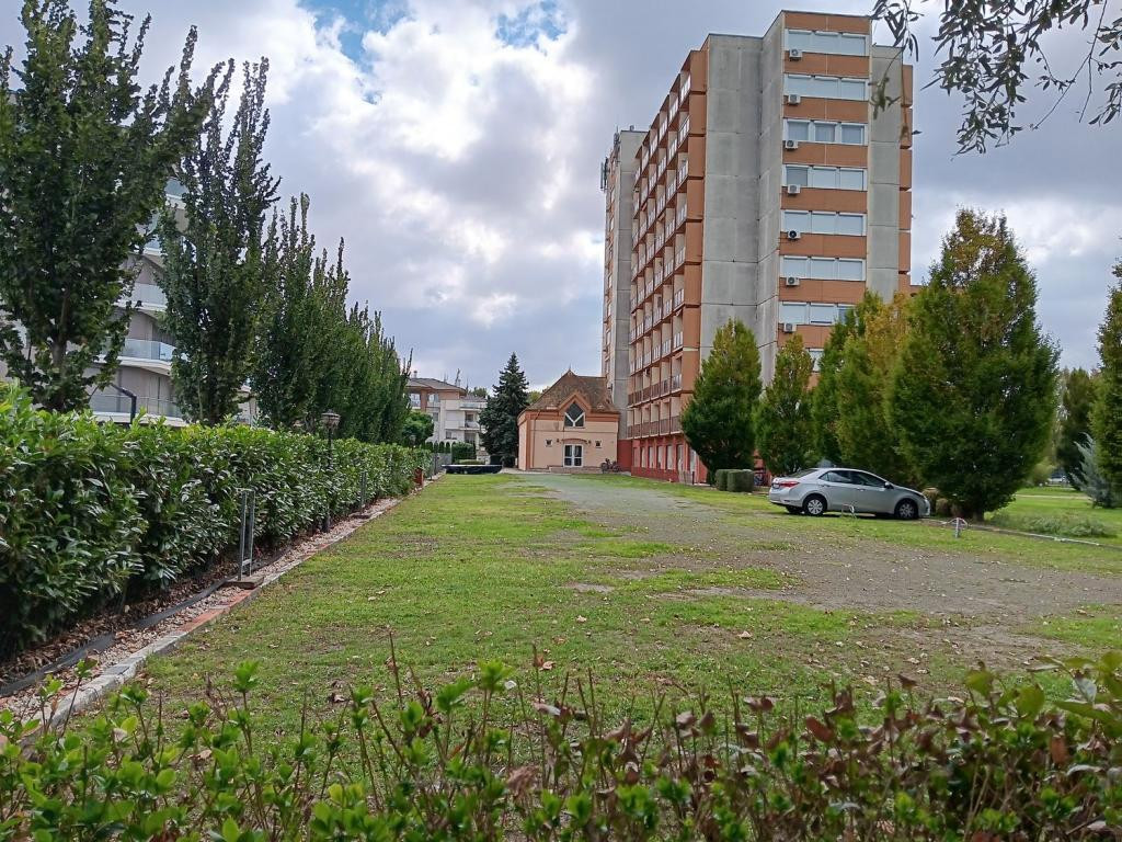 -- A társasház kertjében játszótér, nagy terület napozáshoz.