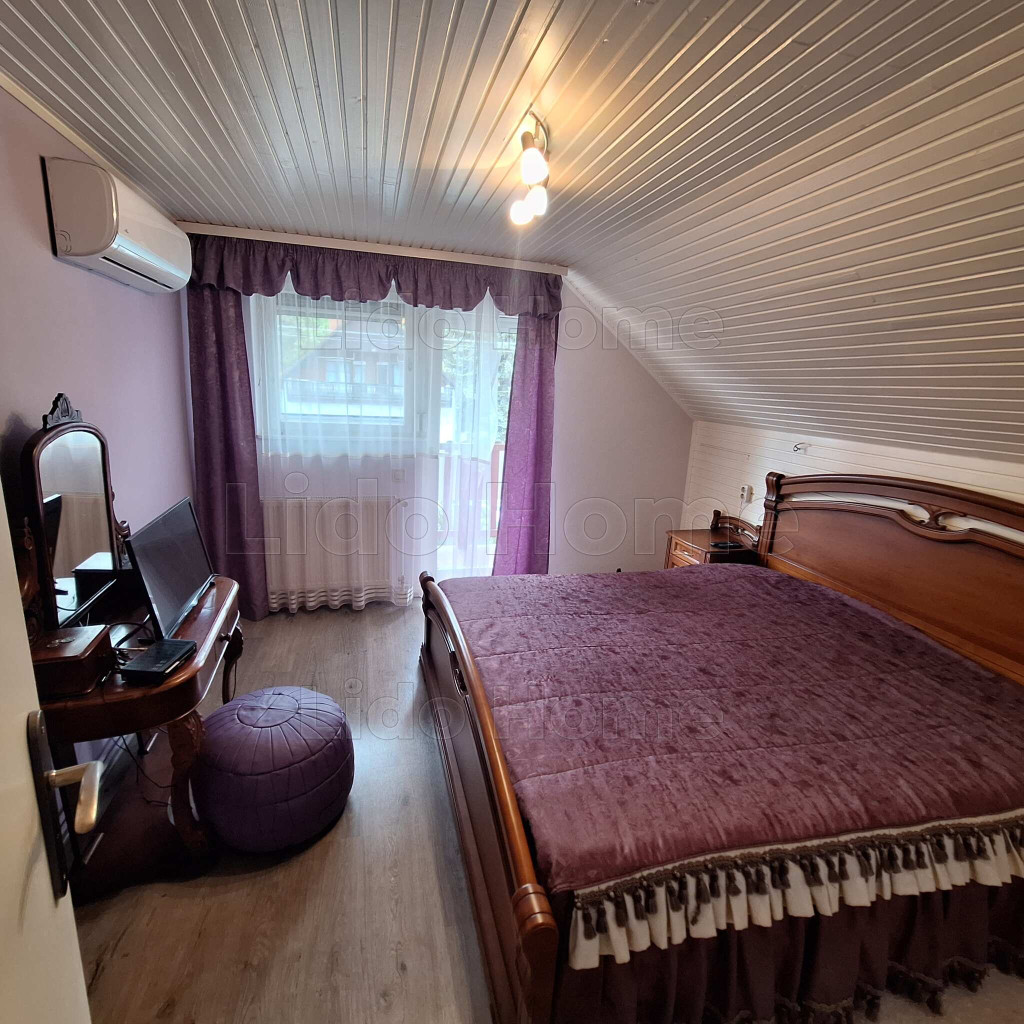 -kényelmes belső lépcsőn jutunk az emeletre, itt 2 hálószoba, wc, kis közlekedő, elöl-hátul 1-1 erkély található
