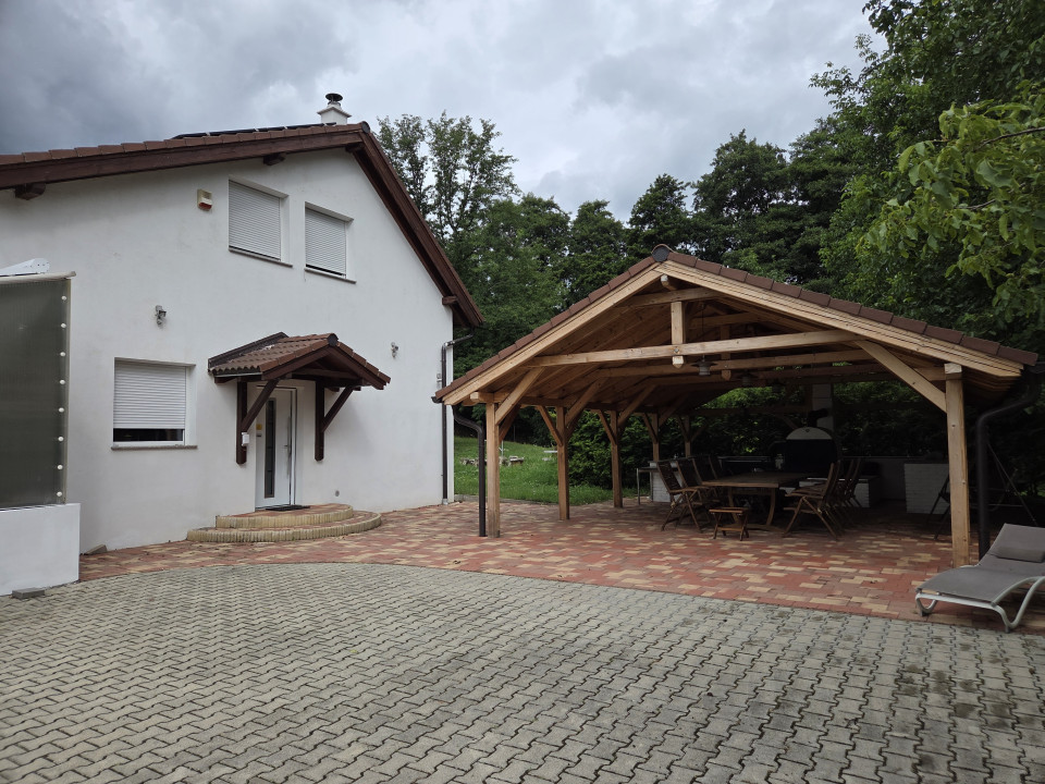 Sopron közelében gyönyörű luxusbirtok, 240 m2-es önellátó öko házzal , csendes erdős részen eladó. A területen patak, halastó és rengeteg gyümölcsfa található