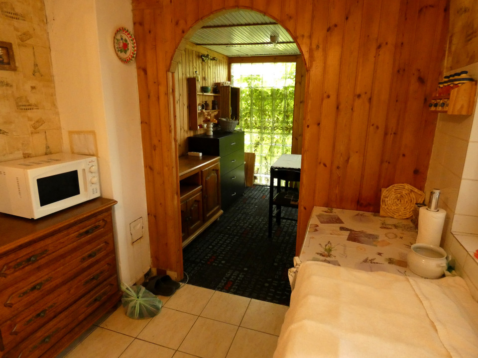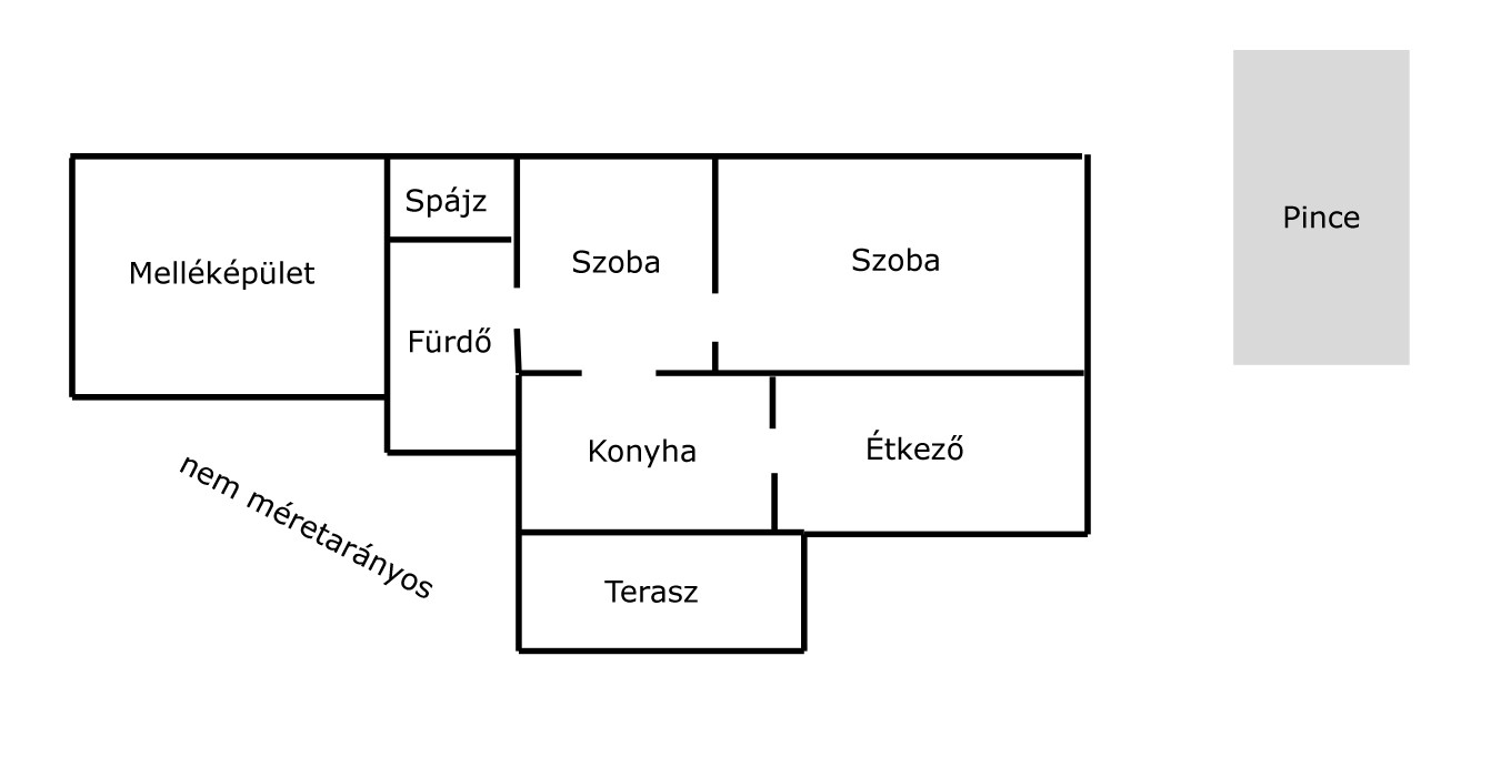 A falazat részben fa, részben tégla. Víz (fúrt kút), villany a házban.