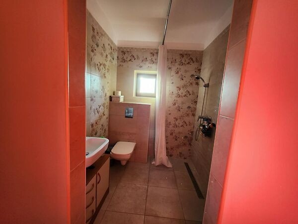 -Emelet: feljáró a tó felől, külön bejárattal. Egy nagy fedetlen terasz, csodálatos panorámával a tóra. A teraszról nyílik kettő ajtó a 2 db halószobára, amit összekapcsol egy folyósó beépített szekrénysorral és egy közös zuhanyzós, wc-s fürdőszobával. Padlófűtés, klímák. Hidegburkolat, laminált padló.