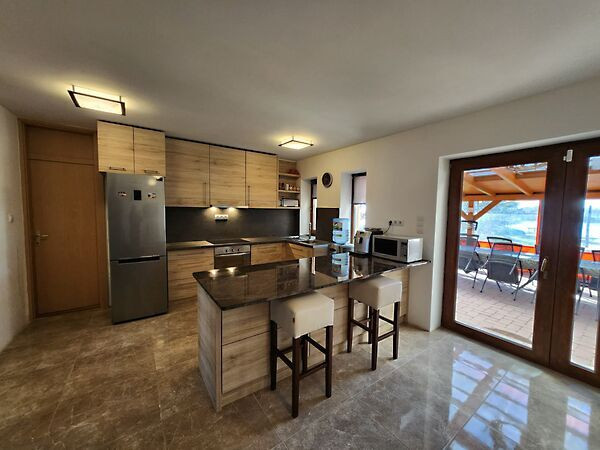 · Az épület az évek során folyamatosan kényelmileg bővült: nyári konyha épült, fedett terasz (cserép+ polikarbonát UV), téliesített terasz (lehajtható ponyva) és szalonnasütő bográcstartóval.
