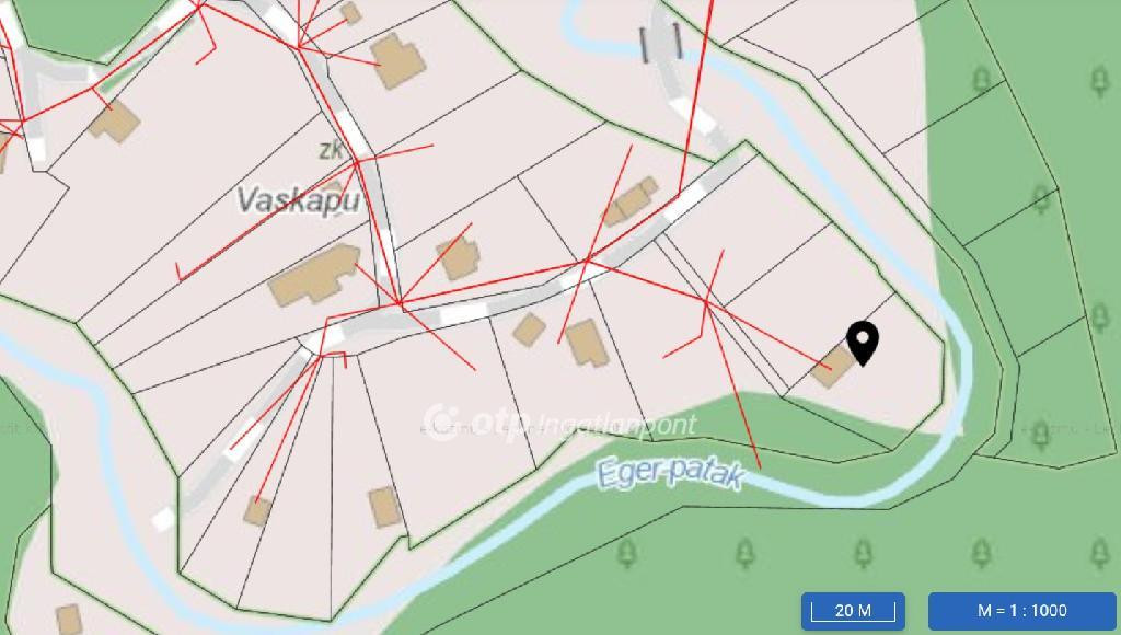 Az ingatlan a Vaskapu-dűlőben, csodálatos természeti környezetben található. A jelenlegi 1600 m2-es telek két porta egybevonásával keletkezett, 2016-ban zártkerti művelés alól kivett területté nyilvánították; jogi jellegét tekintve Natura 2000 terület. A telek különlegessége a gyógyító természet közelségében, és a körülötte fellelhető élővilág gazdagságában rejlik. A szomszédoktól kellemesen távol eső kertet dombok, és erdők ölelik körül, a hely varázsát az Eger-patak csobogása fokozza, amely - mintegy természetes határt alkotva - körbe futja a területet. Friss levegő, madárcsicsergés, tücsökciripelés, szarvasbőgés, és zavartalan, tiszta, csillagos ég várja az ideköltözőket. Az állandó lakhatásra is alkalmas, vegyes - tégla, szilikát - falazatú, hullámpalával fedett, kétszintes lakóépület a telek közepén helyezkedik el, külső falait, és a padlásteret szigeteléssel látták el. A házon belül 1 nappali. 2 hálószoba, 1 konyha, 1 kamra, 1 fürdőszoba-WC, 1 közlekedő, és 1 előtér került kialakításra. Az emeleten az erkéllyel ellátott tetőtér befejezésével további 2 hálószoba nyerhető. A laminált parkettával borított lakóhelyiségek kivételével az összes helyiséget járólappal burkolták. A nappali falát betöltő fémkeretes nyílászárók, méretes üvegfelületükkel egykor az eredeti bejáratot képezték, később ezt a szakaszt tégla szerkezetű előtérrel bővítették. A többi nyílászáró fából készült. A fűtésről 1 darab cserépkályha gondoskodik, mely kifűti az egész földszintet. A vízellátást házi vízmű segítségével ásott kút biztosítja, melyből bevizsgált, emberi fogyasztásra alkalmas ivóvíz nyerhető, a meleg vizet villanybojler szolgáltatja. A vizet bevezették a kerti zuhanyba, és a kinti csapba is. A parkolás az udvaron zárt kocsibeállóban megoldott. A kinti faházban 2 hálófülke, 1 nyári konyha, és 1 szerszámos kamra került kialakításra. Az udvaron rendelkezésre áll továbbá egy betonozott, fedett, hideg vizes mosogatóval, gáztűzhellyel felszerelt kerti kiülő, és egy tűzifatároló. A térségben a áramhálózaton kívül más közmű nem elérhető, a szennyvíz tárolására zárt szennyvíztározó nyújt megoldást, a szemételszállítás megoldott. A környéken a legtöbb házban családok élnek életvitelszerűen. A buszmegálló 10 perc sétával elérhető, a tömegközlekedés Eger irányába kiváló. Az ingatlan tökéletes választás mindazoknak, akik elvonulnának a város zajától, és a természet csendjében töltekezve élveznék a szabadság érzését, és a friss levegő üdítő erejét.