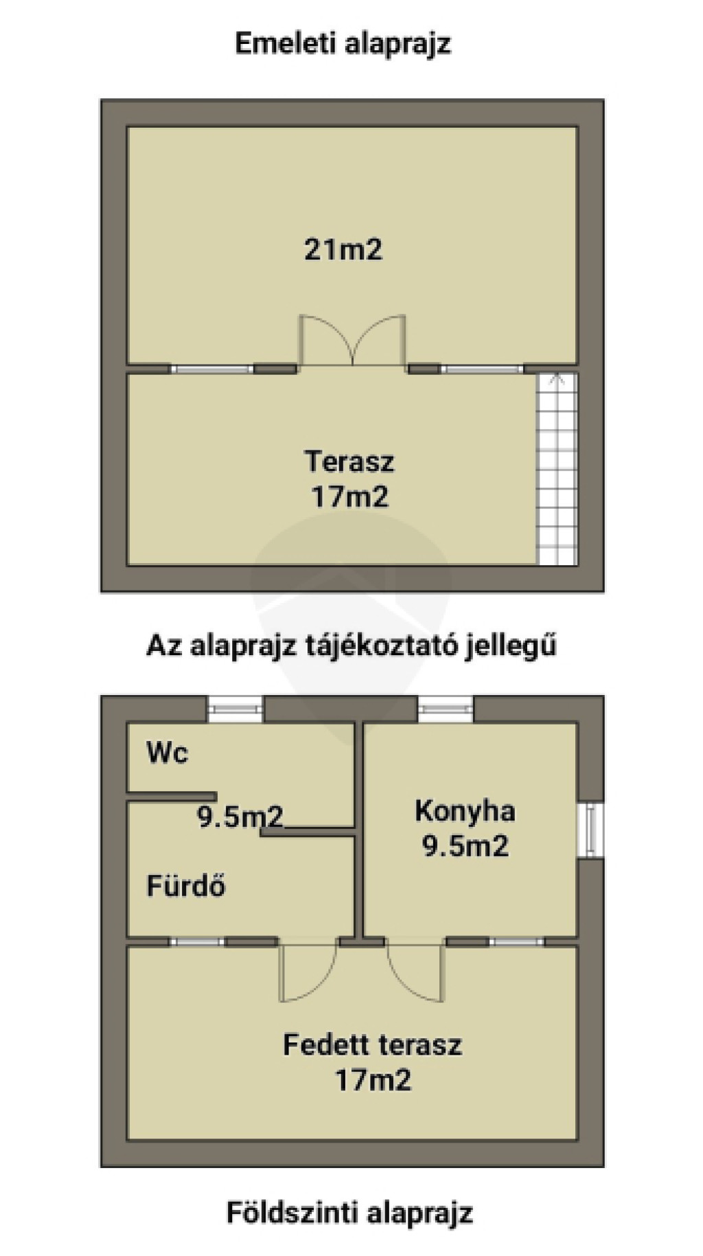 Emeleti terasz (17 m²): járólappal burkolva, hangulatos kilátással