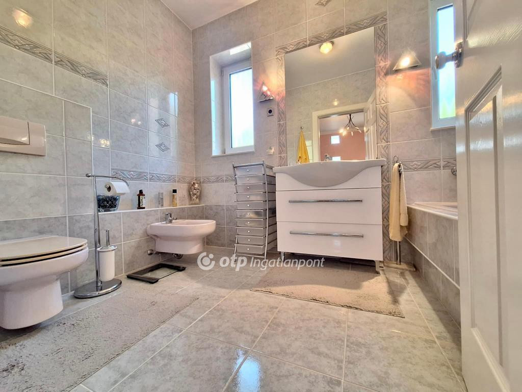 https://www.youtube.com/watch?v=jLuSopnLcro Csak az OTP Ingatlanpont kínálatában eladásra kínálok egy ÖRÖKPANORÁMÁS, 6 SZOBÁS, 295 nm-es, MINDEN IGÉNYT KIELÉGITŐ CSALÁDI HÁZAT SZENTENDRÉN PISMÁNYBAN! A házat Vonnák János Ybl dijas építész tervezte. Az ingatlan körbejárható és összközműves 1079 nm telken fekszik dupla garázzsal ellátva. A 40 nm-es teraszról a kilátás fantasztikus érzést mozgat meg az emberben. A földszinten az előtérből az egylégtérben elhelyezkedő amerikai konyhás nappaliba érkezünk, amely a már említett csodás kilátással rendelkező 40 nm-es teraszkapcsolattal van ellátva. Az étkezőből közelíthető meg a hálószoba, amely kertkapcsolattal rendelkezik, és itt található még egy gardróbszoba és egy káddal beépített fürdőszoba. Az emeleten található egy tágas nappali 11 nm-es terasszal, csodálatos kilátással, valamint található egy hálószoba 3,73nm-es terasz kapcsolattal, egy dolgozószoba, egy gardróbszoba és egy káddal ellátott fürdőszoba. A pinceszinten van egy kétbeállásos, 40 nm-es garázs, tárolók, háztartási helyiség és egy télikert egy 4 személyes szauna zuhanyzóval ellátva. Az ingatlan riasztórendszerrel van ellátva mozgás és- nyitásérzékelővel, fűtését Vaillant gázkazán látja el padlófűtés (földszinten és a tetőtérben) hűtő-fűtő klímákkal kiegészítve. A kert hangulatos igényesen parkosított, öntözőrendszerrel ellátva illetve kerti sütögetővel. A kertben kiépített kutyakennel várja új lakóját, Az autóbeállást elektromos kapu teszi lehetővé. A személyi kapubejáró mellett, kétszárnyú kapuval ellátott beálló is található biciklik, motorkerékpár, utánfutó stb.eszközök ideiglenes tárolására. Az ingatlan saroktelken fekszik csendes átmenő forgalomtól mentes helyen. A tulajdoni lapon hétvégi ház és udvar, a tulajdoni viszonyok rendezettek, tehermentes, rövid időn belül birtokba vehető . Ajánlom nyugalomra, csendre, jó levegőre és a nap MINDEN szakában CSODÁS kilátásra, panorámára vágyóknak! Infrastruktúrája is remek, Szentendre belvárosa busszal (megálló 2 percre) és autóval is könnyen megközelíthető. Kiválóan alkalmas családok számára, akik szeretik a természet közelségét, a csendet, de szeretik azt is, hogy a jó közlekedés, és a vásárlási lehetőségek is közel legyenek. Ha Ön számára fontos a nyugalom, a természet, a panoráma és mindez a várostól nem messze, hívjon és tekintse meg az ingatlant akár hétvégén is! CSOK-Hitel és jogi ügyintézés az irodában. Az OTP Csoport teljes körű ügyintézéssel áll az eladók és a vevők rendelkezésére! Cégünk digitális rendszerrel dolgozik már közel 6 éve, így akár online, személyes találkozó nélkül is zökkenőmentesen vásárolhatja meg a kiválasztott ingatlant! A kínálatunkból választott ingatlan finanszírozásához kedvezményes hitel- és lízing konstrukciót, állami támogatásokat, lakás-takarékpénztári megoldásokat kínálunk. Az adásvételi szerződés megkötéséhez igény szerint megbízható ügyvédi közreműködést biztosítunk, és segítséget nyújtunk az adásvételhez kapcsolódó ügyek intézésében is. Bővebb tájékoztatásért hívjon bizalommal akár hétvégén is! Kérem, tekintse meg az ingatlan bemutató videóját: https://www.youtube.com/watch?v=jLuSopnLcro
