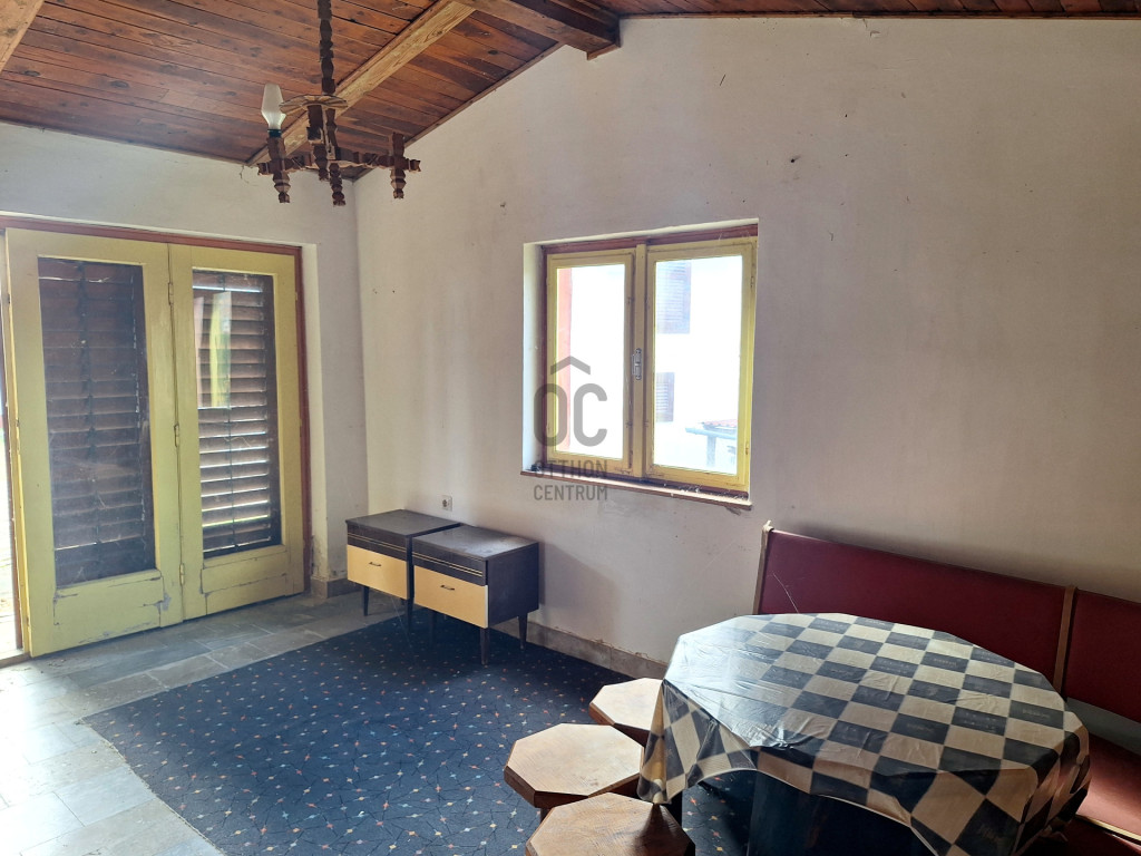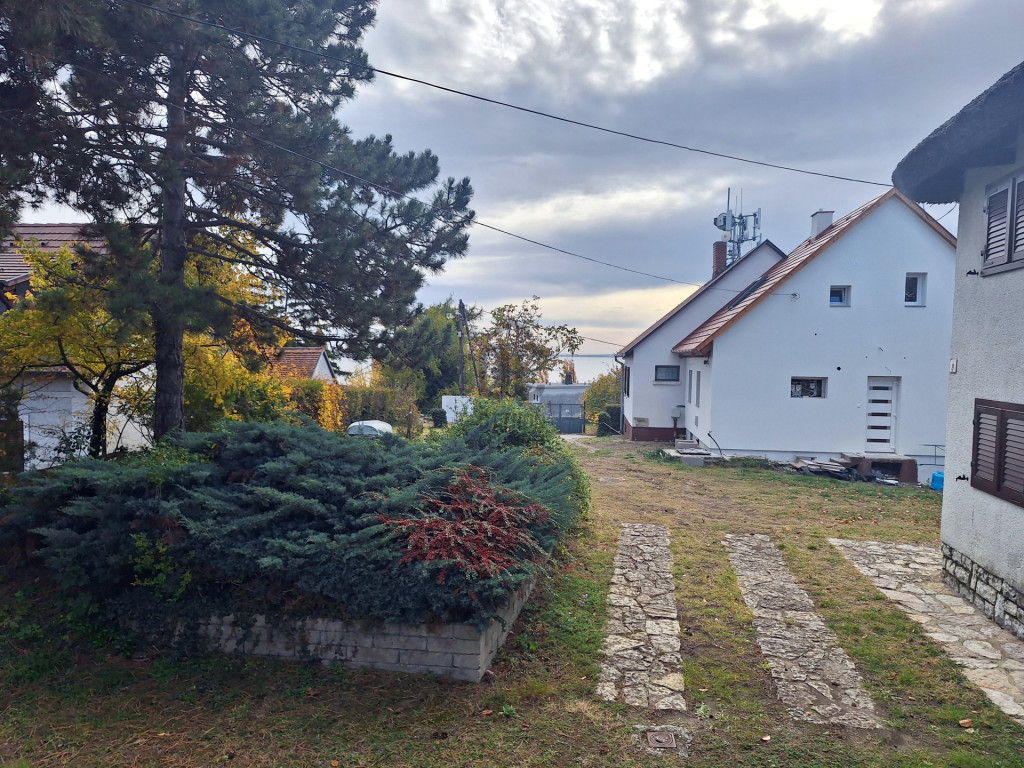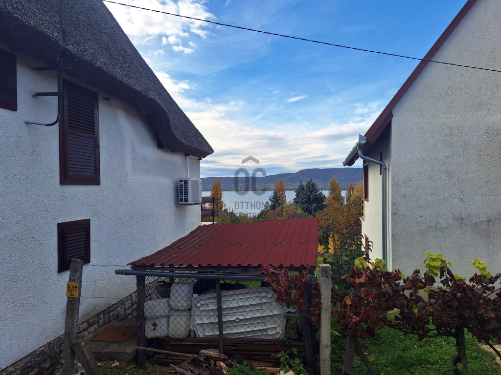 A nyaraló teraszáról két irányban is látható a Balaton. Az ingatlan felújítandó állapotú.