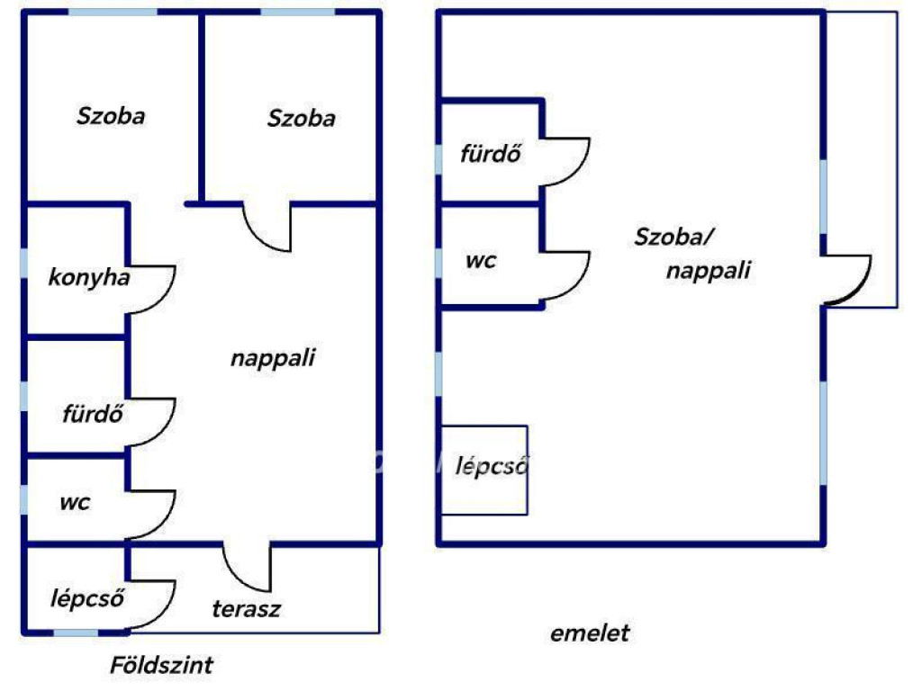 Az ingatlan földszintjén 2 félszoba, nappali, konyha, fürdőszoba és külön WC található. Az emeleten egy légteres, tágas tér áll rendelkezésre, amelyhez saját WC és fürdőszoba tartozik.
