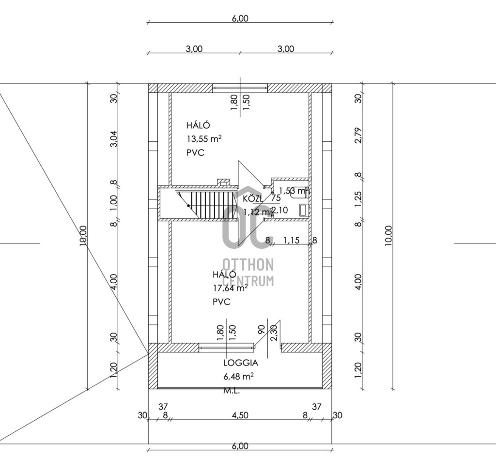 -emeleten: 2 hálószoba +mosdó