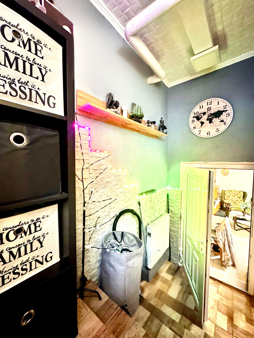 - Fűtés: fatüzelésű kályha + elektromos radiátorok