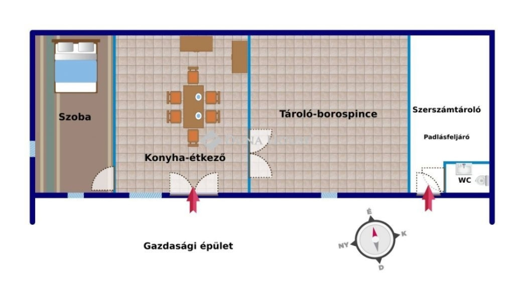 Az ingatlan aszfaltúton közvetlenül megközelíthető, panorámás a környező szőlőskertekre és dombokra. A tégla építésű, több mint 90 m2 pince és présház, a közel 3000 m2-es telek aszfaltúttal szomszédos szélén helyezkedik el, enyhén lejtős terület magaslati részén. Esztétikus kialakítása kiemelkedően jó lehetőségeket biztosít. Felújítása megkezdődött, használatba vehető állapotú, de igény szerint a vizesblokkot még ki kell alakítani.