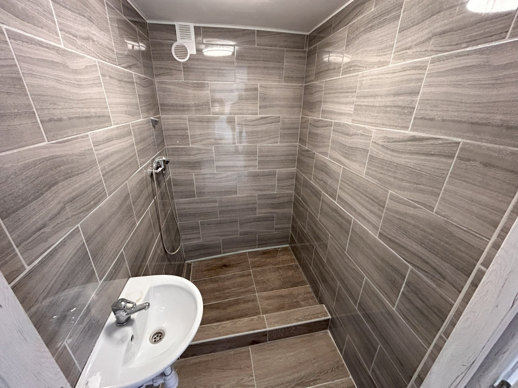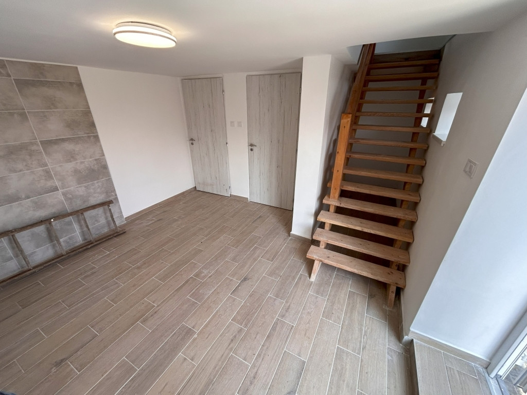 Felső szint: Egy világos előtéren keresztül jutunk el a szobába és a konyhába, amelyhez egy külön hátsó bejárat is ki lett alakítva.