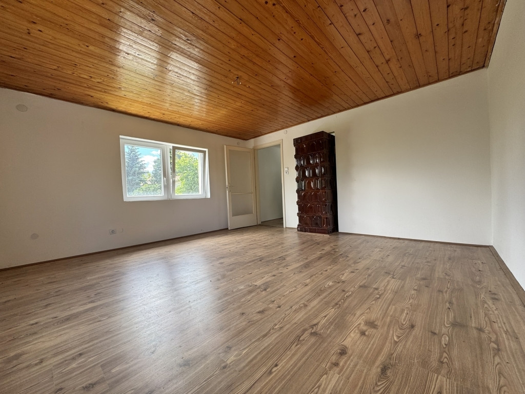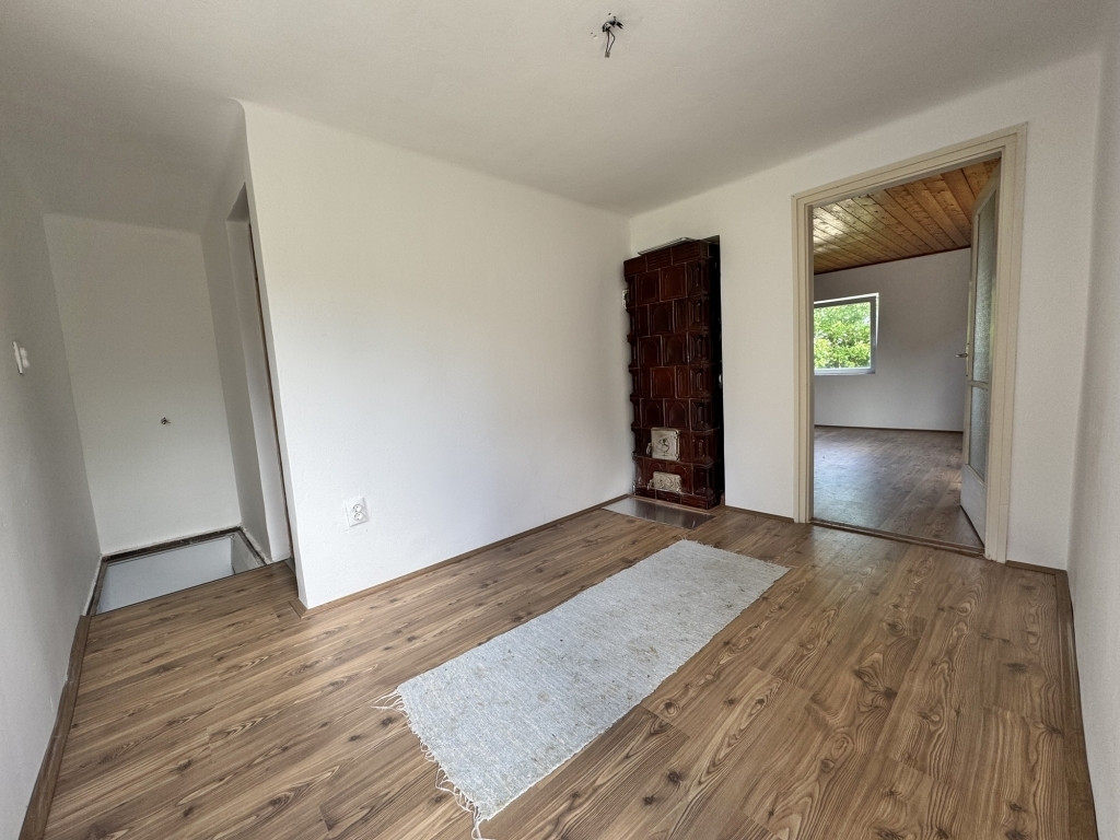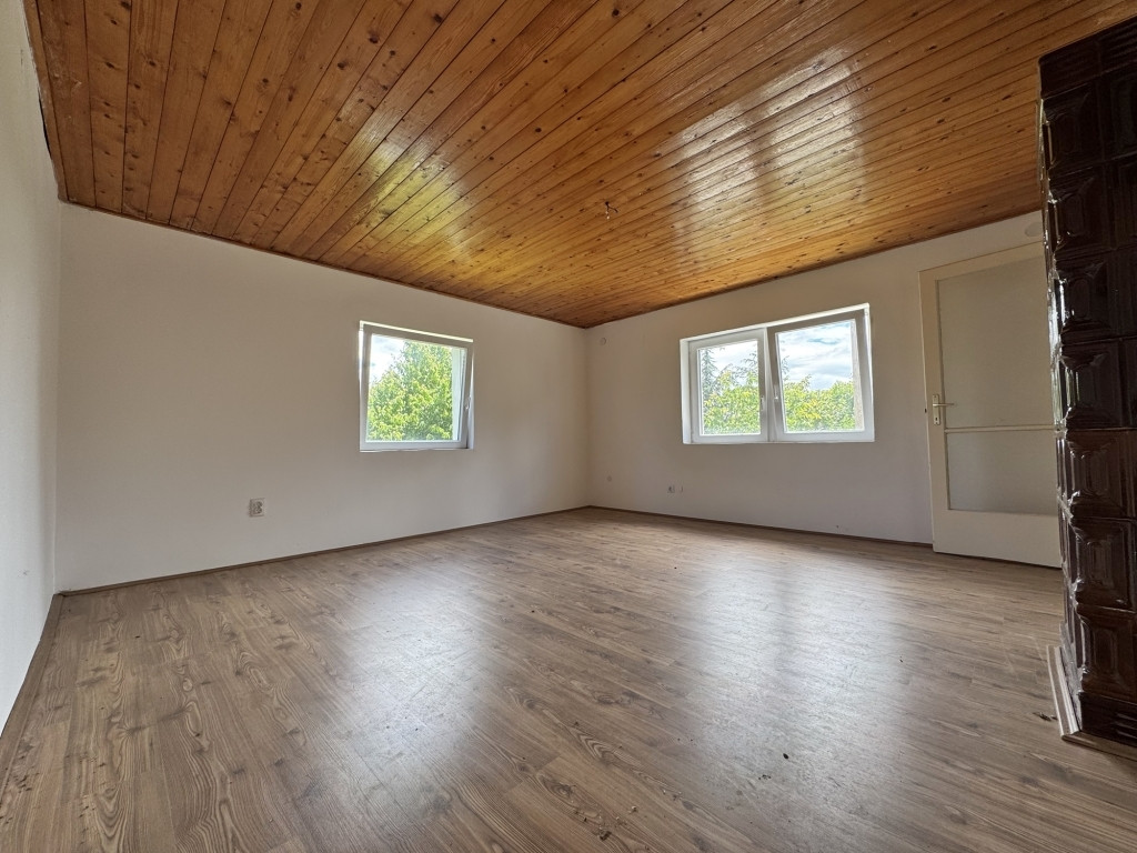 Itt található a zuhanyzós fürdőszoba WC-vel, valamint egy napfényes, különösen tágas szoba, amely jelenleg nappaliként funkcionál. Az innen nyíló ablakokból gyönyörű, panorámás kilátás nyílik a környék természeti szépségeire. A ház fűtése kályhával megoldott, a felső szinten pedig egy gyönyörű, esztétikus cserépkályha biztosítja a kellemes meleget a hidegebb hónapokban is, így az ingatlan egész évben lakható.