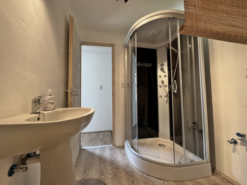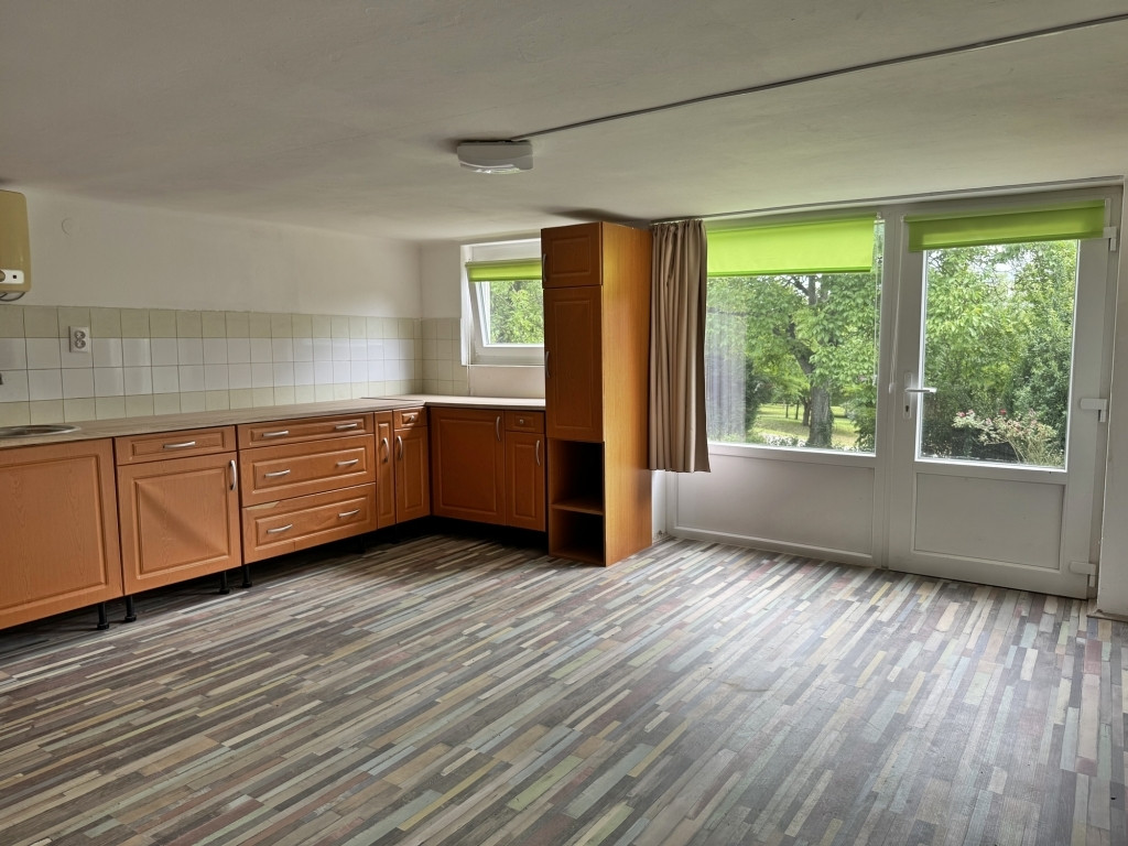 Itt található a zuhanyzós fürdőszoba WC-vel, valamint egy napfényes, különösen tágas szoba, amely jelenleg nappaliként funkcionál. Az innen nyíló ablakokból gyönyörű, panorámás kilátás nyílik a környék természeti szépségeire. A ház fűtése kályhával megoldott, a felső szinten pedig egy gyönyörű, esztétikus cserépkályha biztosítja a kellemes meleget a hidegebb hónapokban is, így az ingatlan egész évben lakható.
