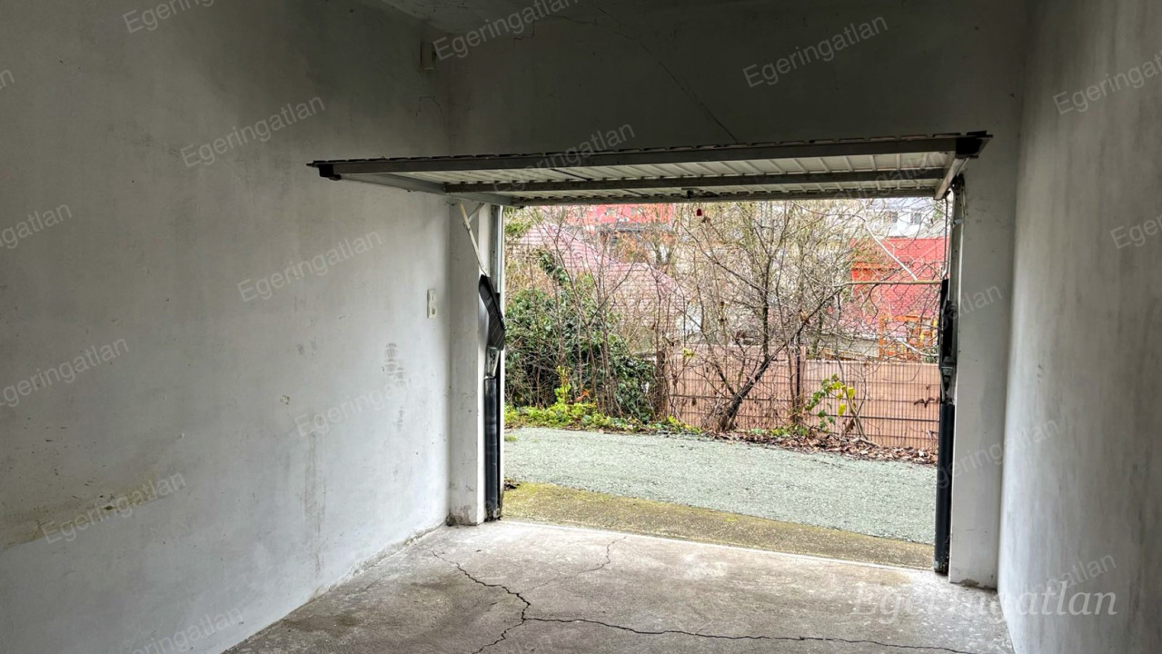 A garázs villannyal ellátott, megbízható billenő típusú Hörmann garázskapuval felszerelt, így ideális autó, motor vagy akár tárolás céljára is.