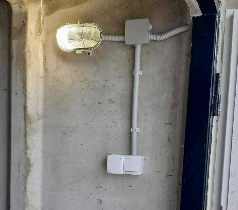 1 db kis fogyasztókra használható dugalj/konnektor, valamint egy lámpa, kapcsolóval került kialakításra.