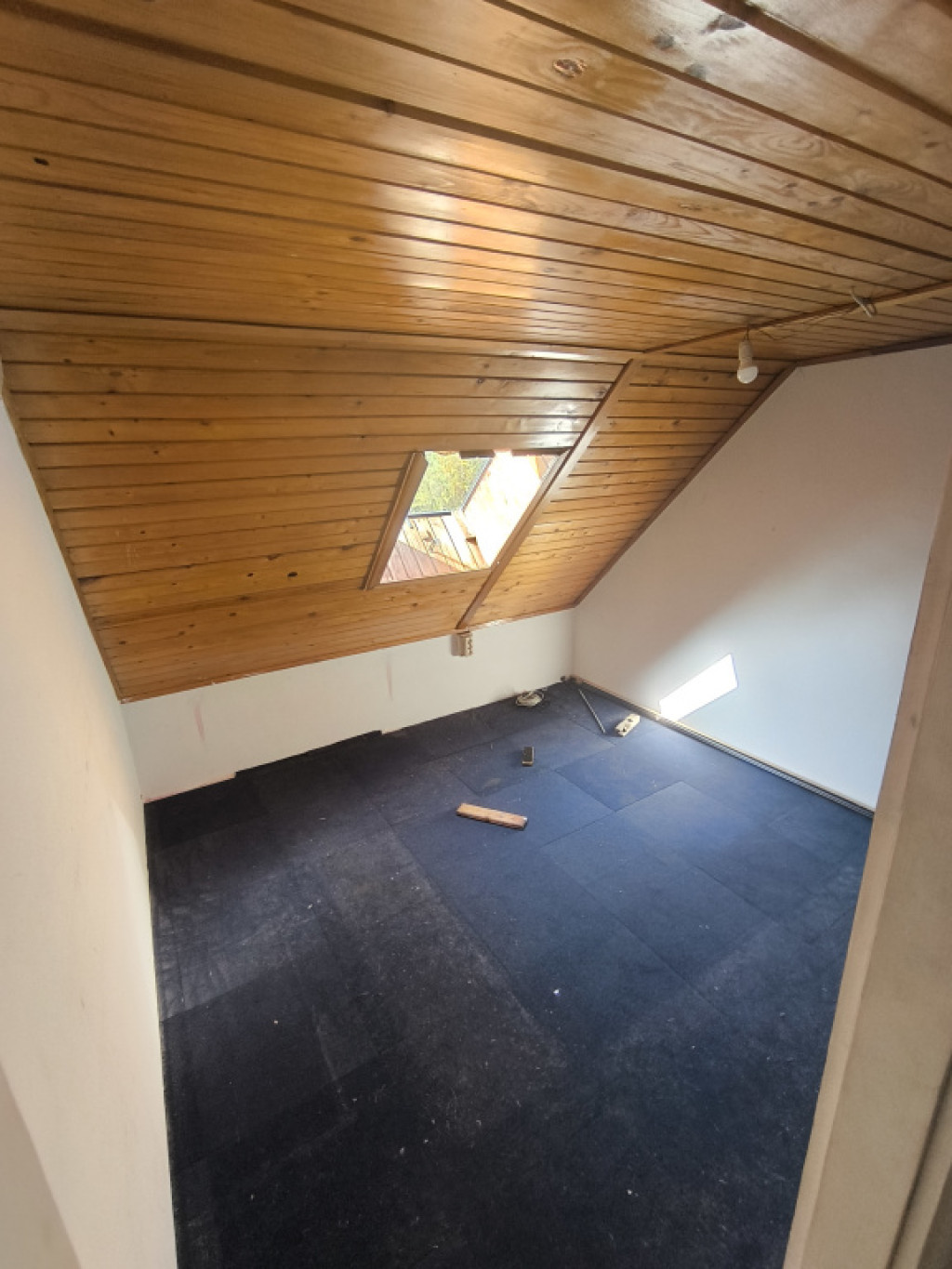 A tetőtérben egy lakás lett kialakítva mely áll :1 szoba , 1 kis konyha és egy sarokkádas fürdőszobából.