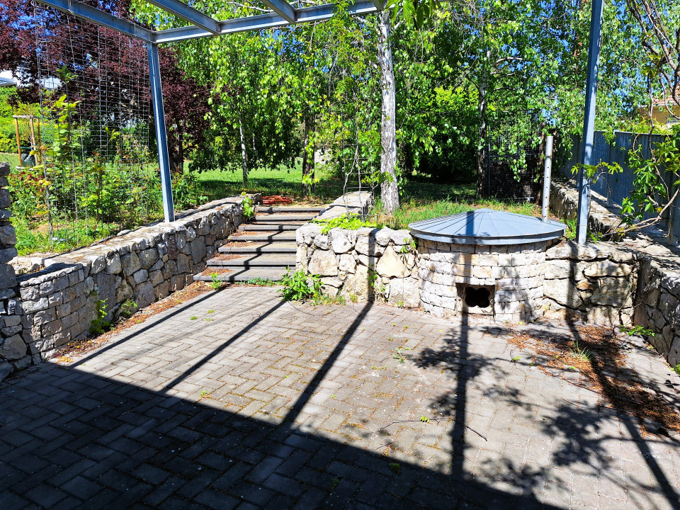 A ház oldalában kertkapcsolatos nagy terasz található.
