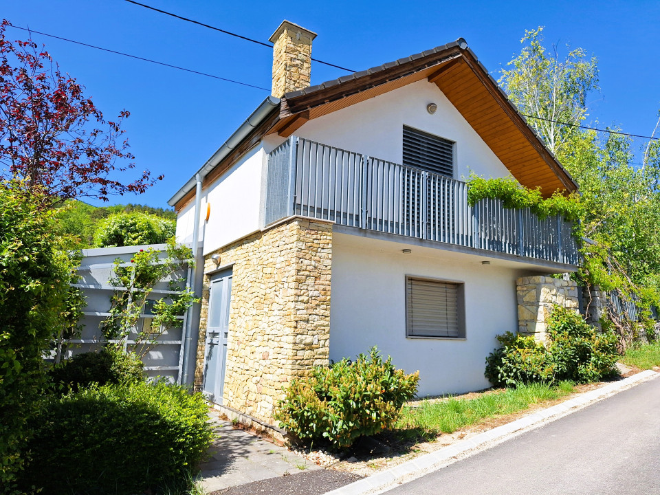 Balatonfüreden a Tamás-hegy lábánál fekvő, kis mellékutcában található a kétszintes házikó.