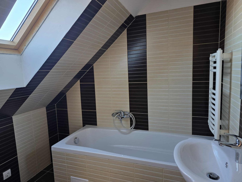 Budakalászon, a HÉV megállótól 3, az Omszki-tótól 10 percre kiadó egy kétszintes, duplakomfortos. nappali plusz 3 hálószobával, terasszal és saját kerttel rendelkező, 80 négyzetméteres ikerház.