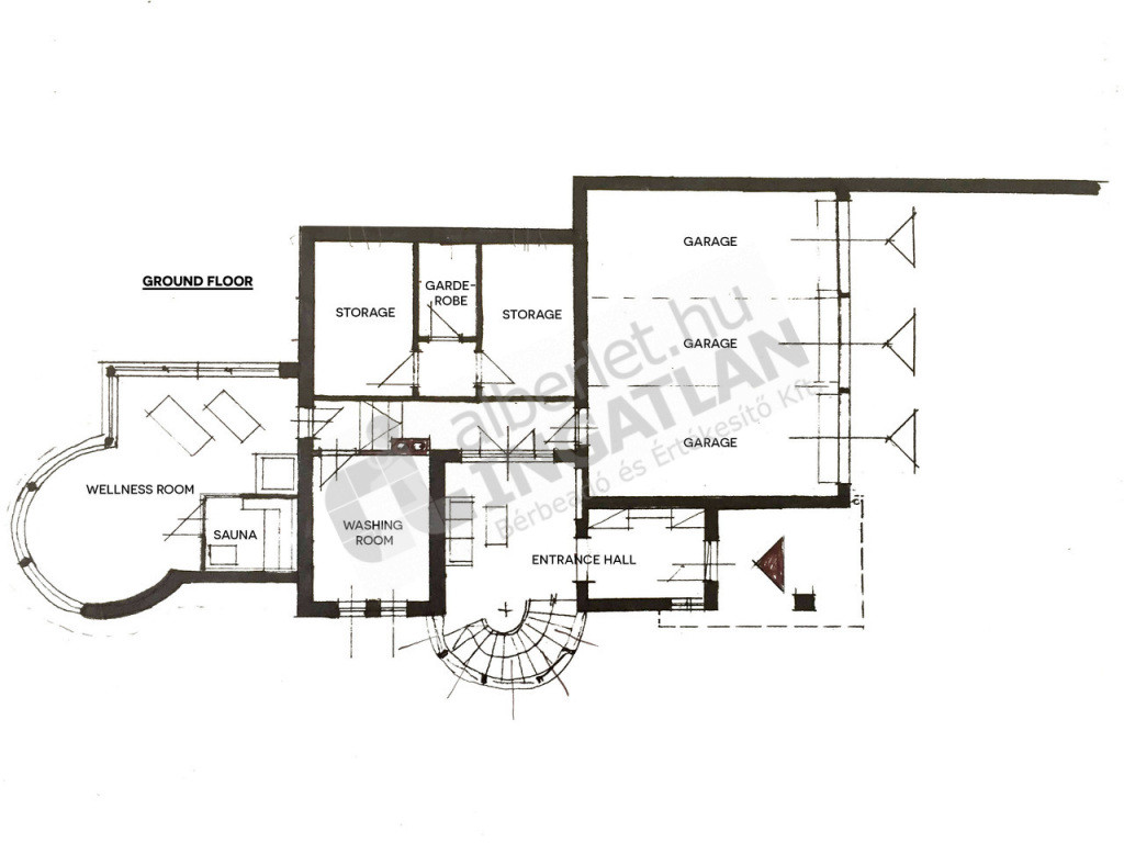 FÖLDSZINT 3 állásos garázs, tágas előszoba, kertkapcsolatos SZAUNA és WELLNESS helyiség, mosókonyha, és tároló
