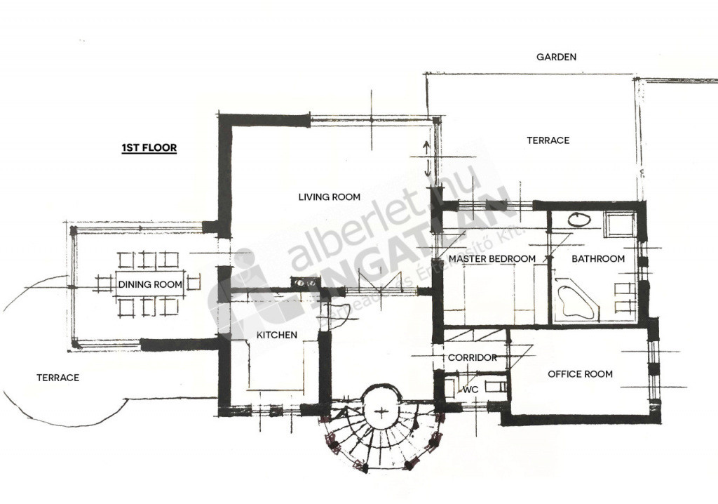 1. EMELETEN nagy nappali kertkapcsolattal és TERASSZAL, panorámás étkező és AMERIKAI KONYHA terasszal, PRIVÁT FÜRDŐSZOBÁS szülői háló vendég WC. !