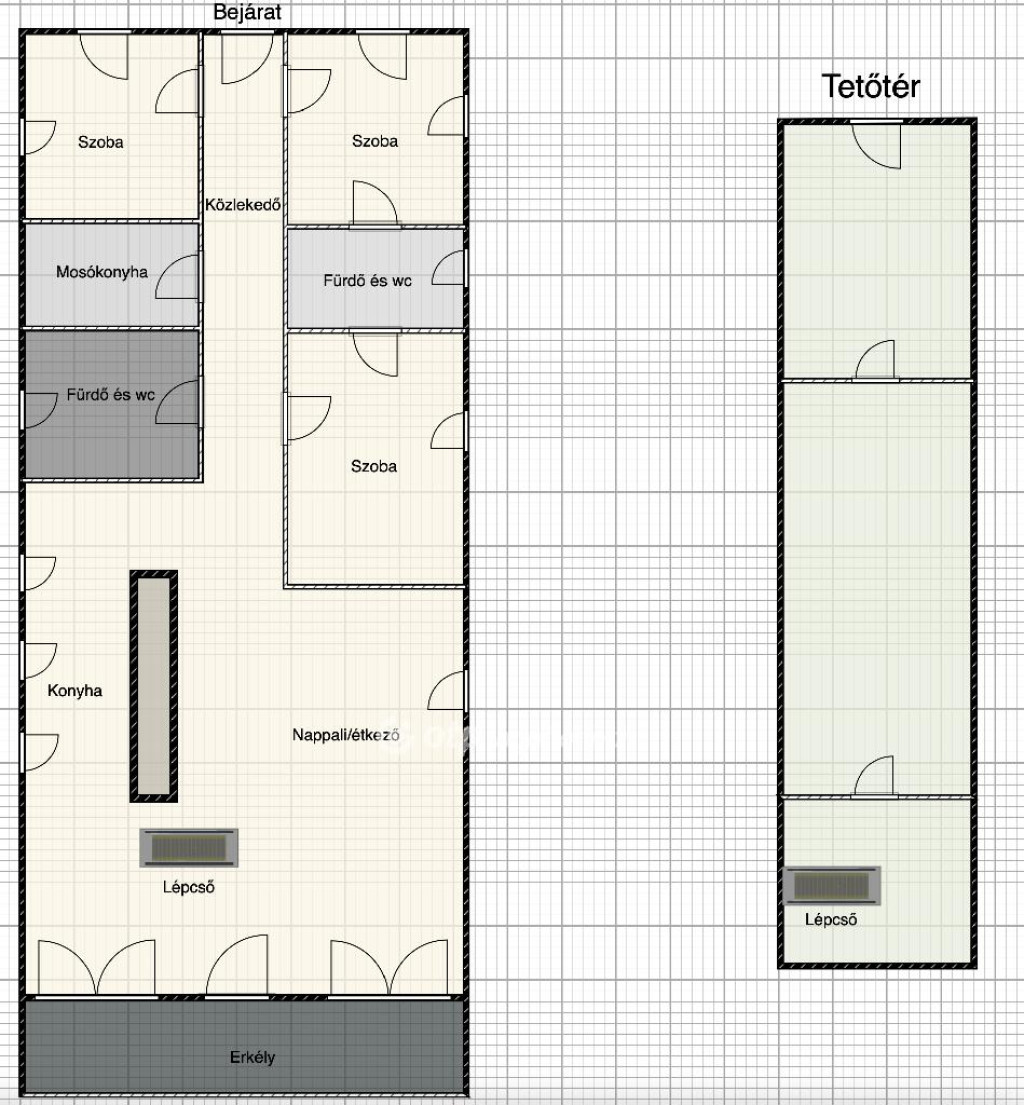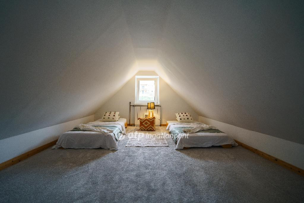 A lakáshoz tartozik egy kb. 50 m2-es tetőtér, amely korábban gyermek hálószobaként működött, de más célra is jól használható:, hobbitér, tárolás.