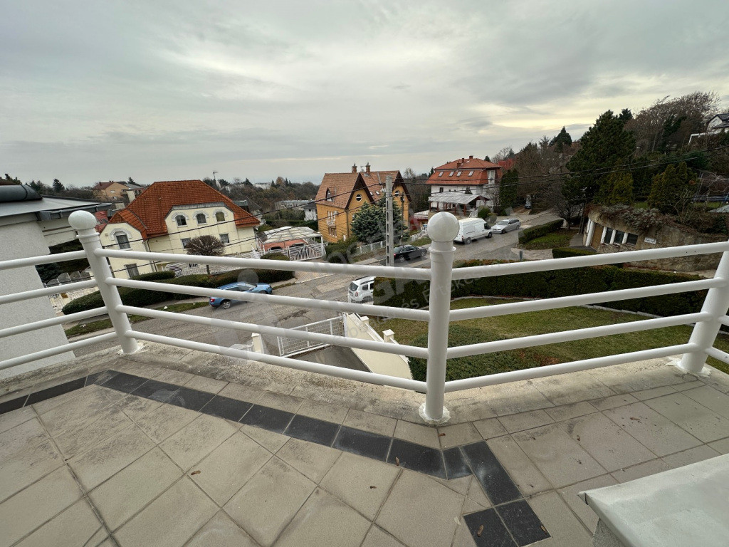 Felső szint: Három külön nyíló szoba, gardróbszoba, fürdőszoba WC-vel, és egy külön WC. Minden szobához tartozik erkély.
