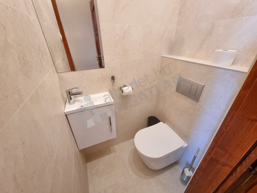 A lakás üresen, gépesített konyhával kerül bérbeadásra. Az ingatlan duplakomfortos, két fürdőszobával és két mellékhelyiséggel rendelkezik. A házhoz tágas, kb. 15 m²-es panorámás erkély, kertkapcsolat, valamint 2 állásos saját garázs tartozik.