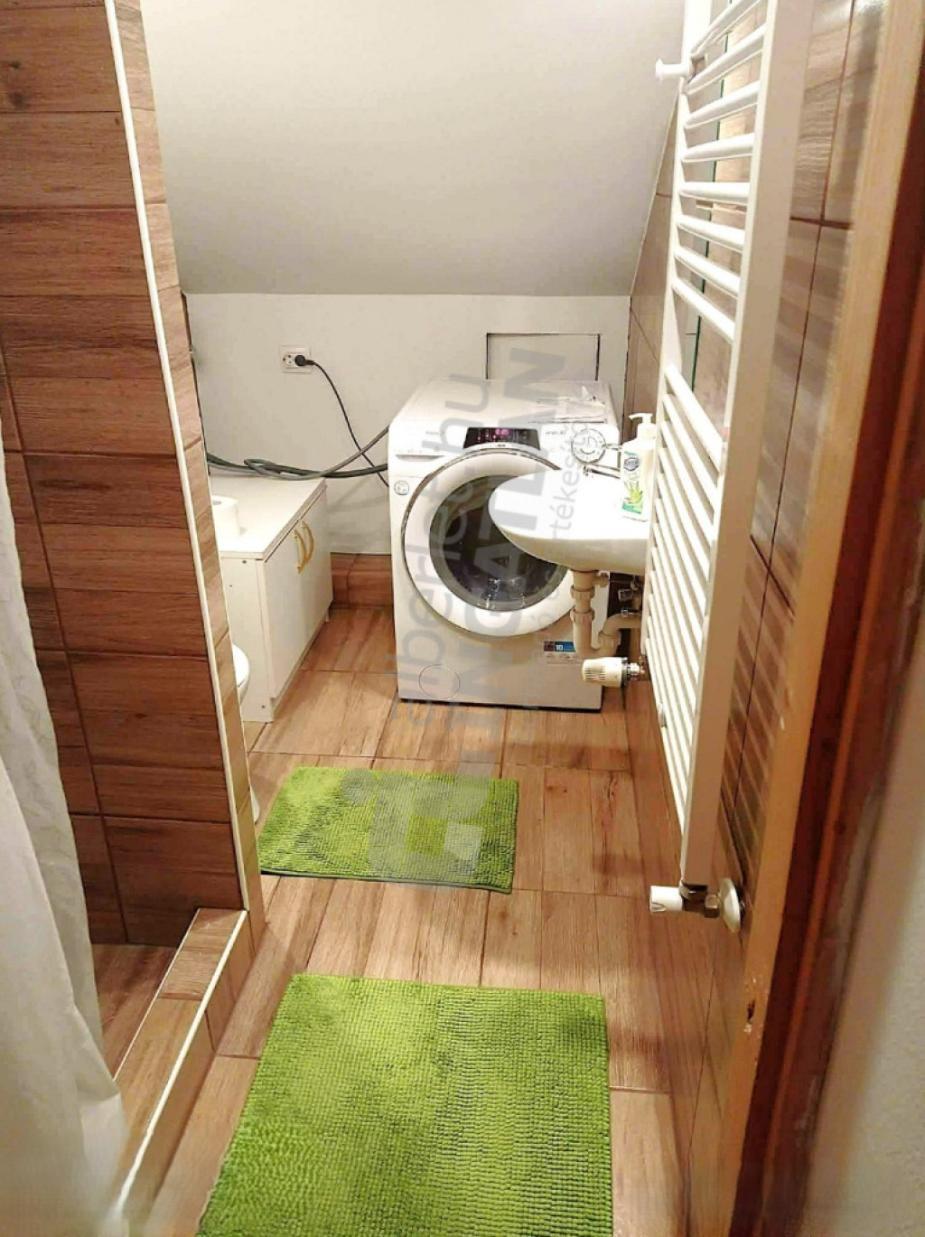lépcsőn felmenve a tetőtérben található, zuhanyzós fürdő, konyha és szoba egyben.