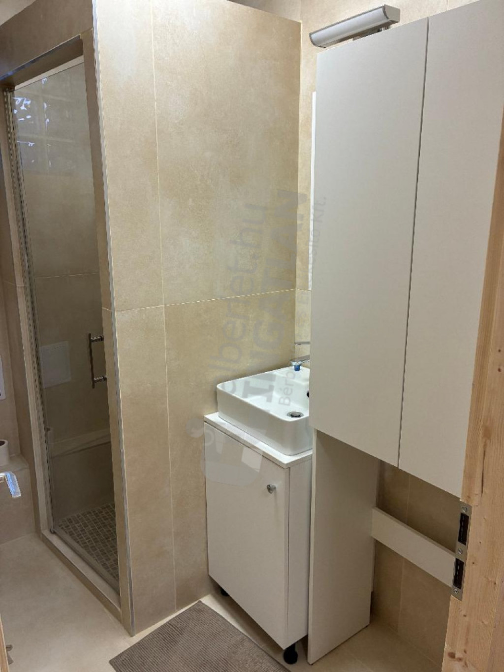 A fürdőszobában zuhanyzó és WC található. A lakás külön víz- és villanymérőórával rendelkezik. A rezsi átlagosan kb. 10 000 Ft havonta, amely a bérleti díjon felül fizetendő.