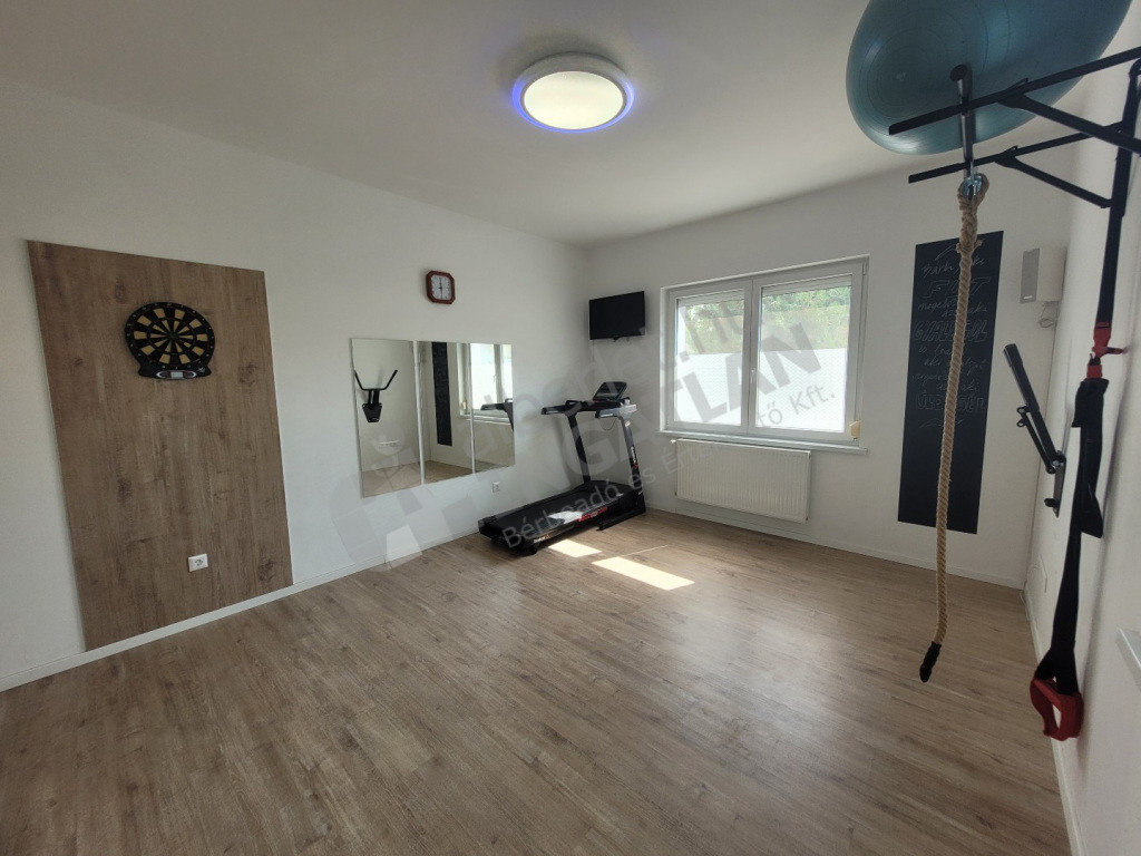 A ház minden nyílászárója műanyag, az ablakokon alumínium redőny. A házban mozgásérzékelők, riasztó, és kamera rendszer is működik. A kapuk távirányítóval és okos rendszerrel telefonról is nyithatóak.