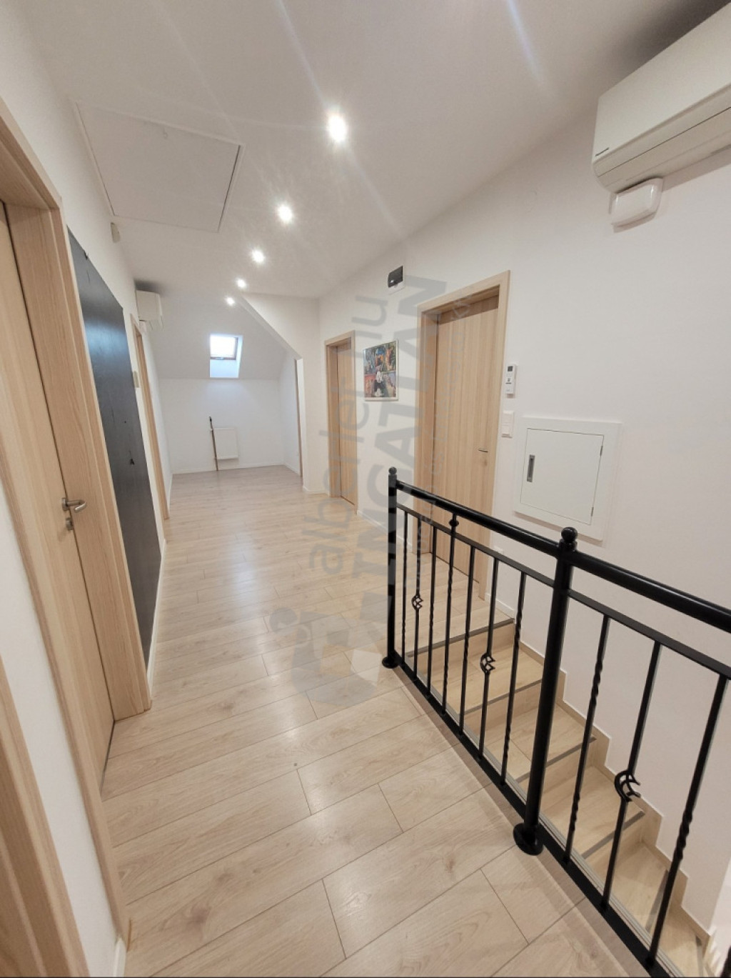 Az emeleti szobák között kétrétegű gipszkarton és hangszigetelős közetgyapot került beépítésre. A 6 szobából egyet akár irodaként is lehet használni. Az emeleten a lépcső mellett egy szennyesledobó is kiépítésre került.