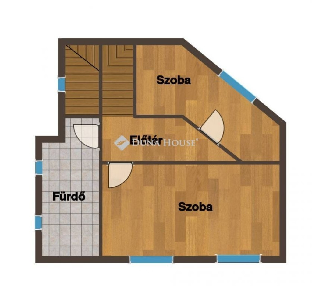 - Lépcsőn felérve egy előtérből közelíthetőek meg a helyiségek