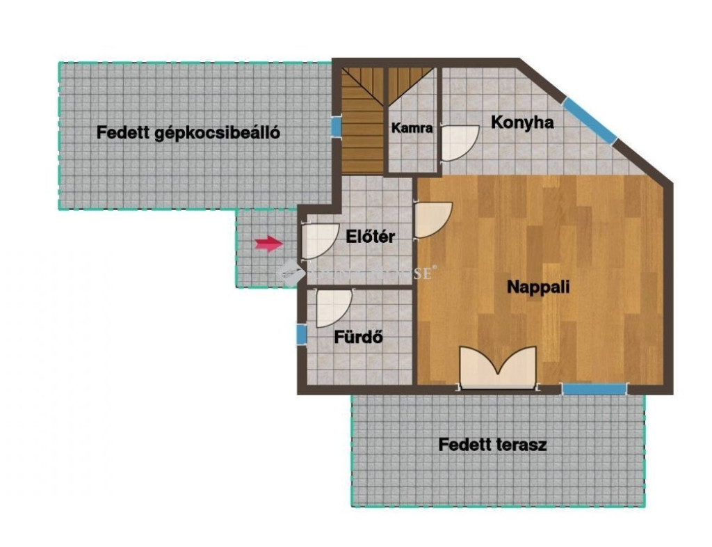 - Konyha mellett közvetlen kamra helyiség - Nappaliból közvetlenül megközelíthető a terasz és a saját használatú kert rész