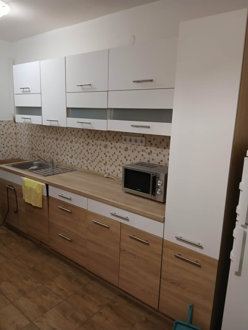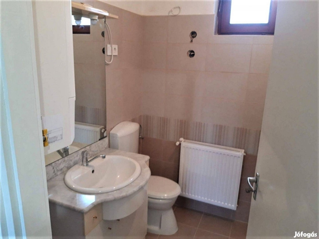 Bútorozott, gépesített (mosogatógép is van), gázkazán fűtésű. Fa nyílászárók hőszigetelt üvegezésűek. Fürdőszoba zuhanyfülkés, a wc-vel együtt van. Nagyméretű, zárt, üvegezett terasz tartozik hozzá. Rezsiköltség 40.000 Ft/hó. Dohányzás kizárólag az udvaron megengedett, állat nem hozható.