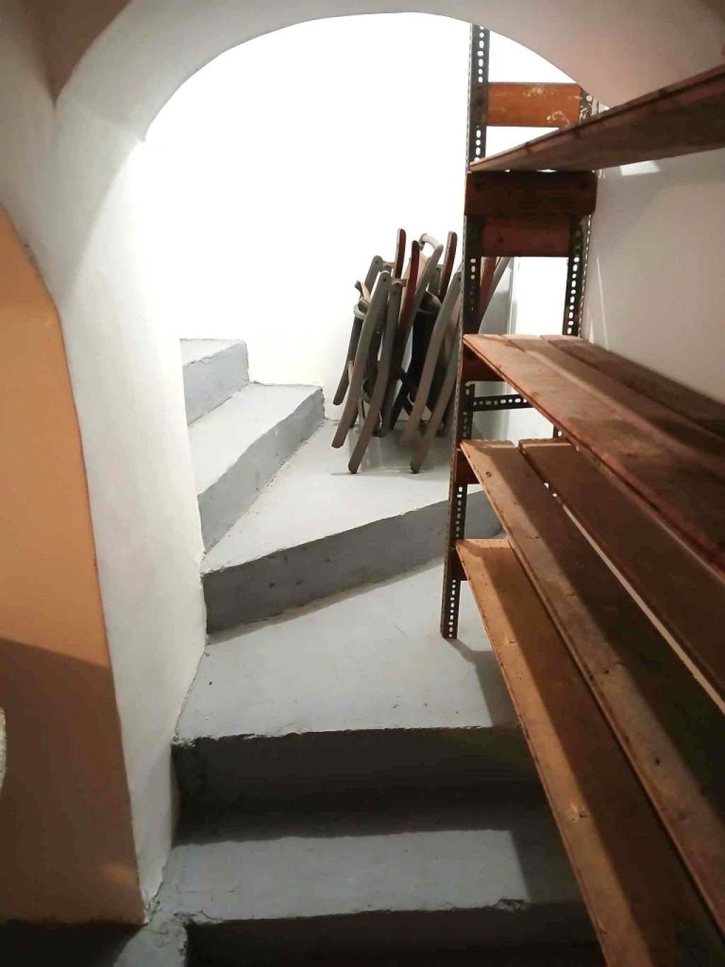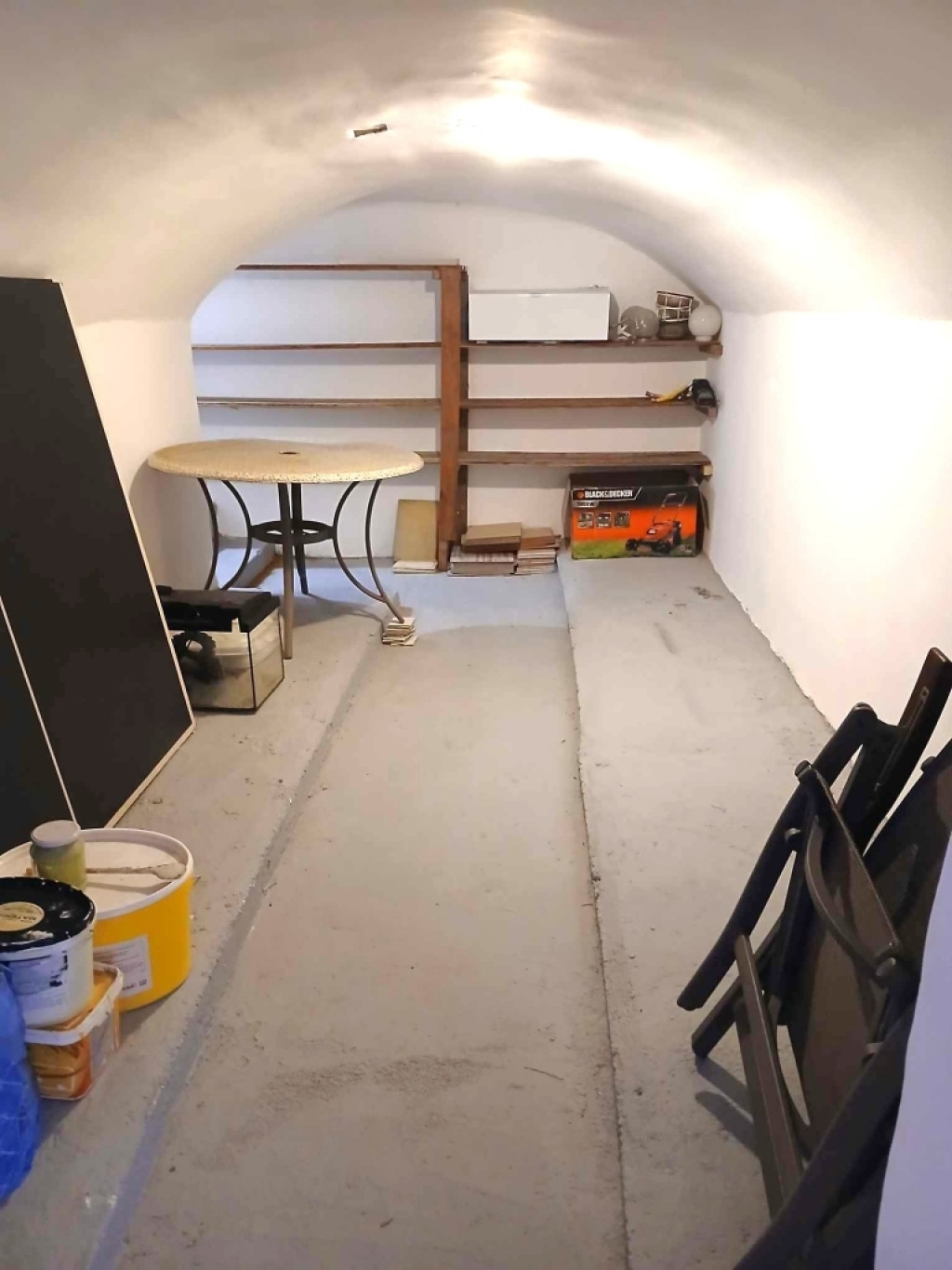 A kamrából közvetlen lejutás van a ház alatti pincébe és a garázsba.