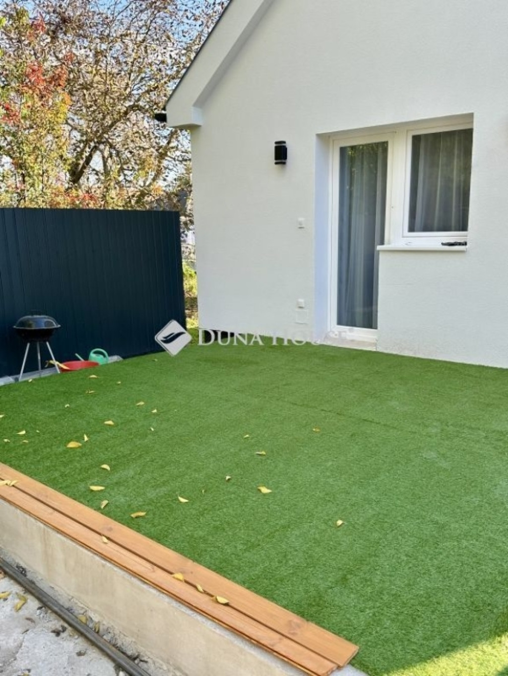 A konyhából azonnal kiléphetsz a 20 nm-es, műfűvel fedett teraszra, a ház mellett pedig lehetőség van sütögetni, grillezni.