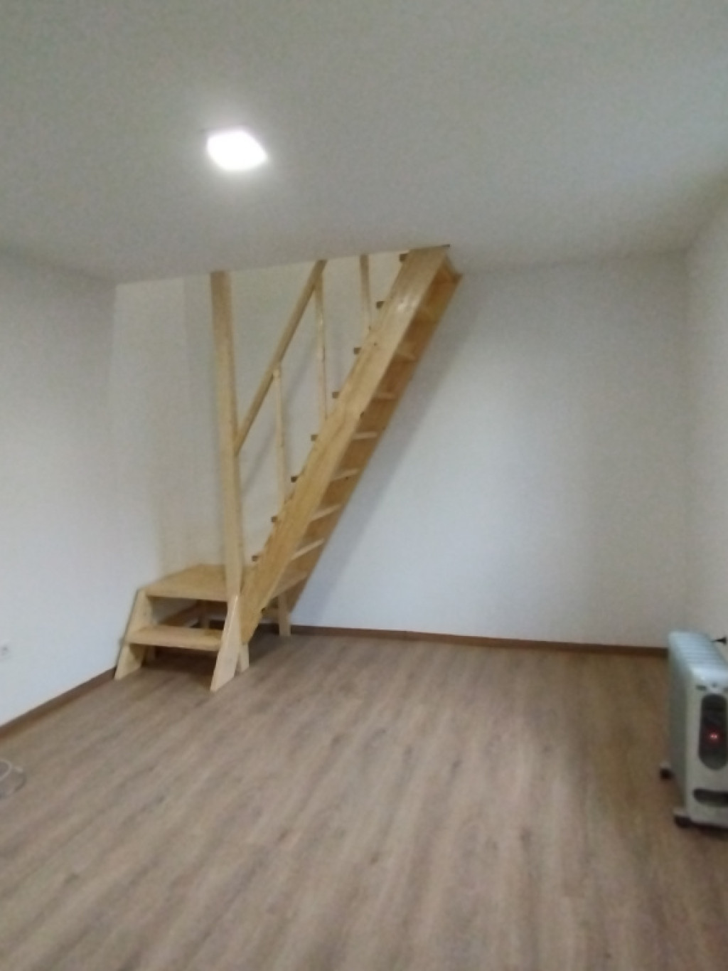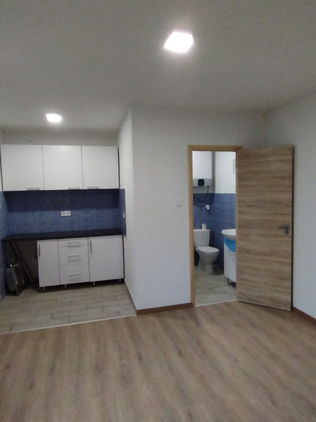 Nappali + konyha, zuhanyzós fürdőszobával. EMELETEN KÉT SZOBA.