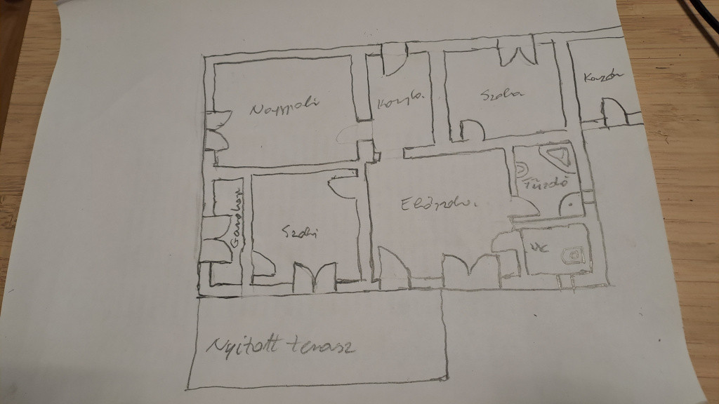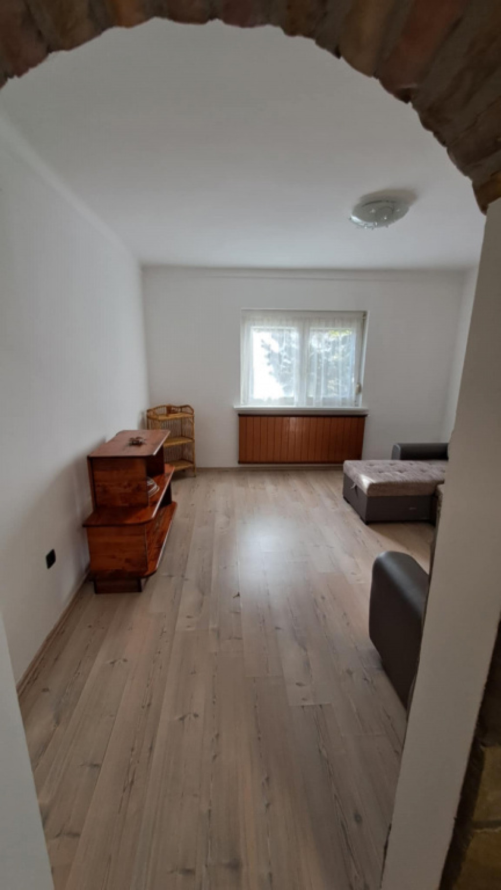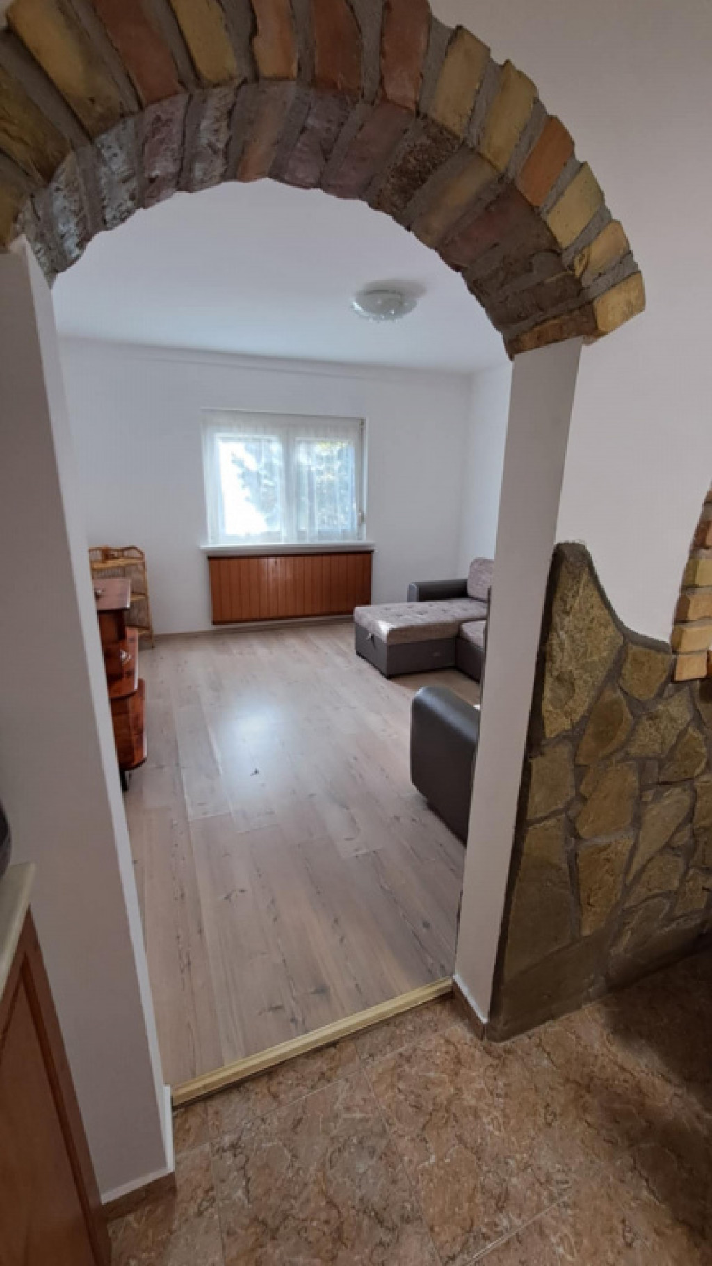 Nappali+kettő szoba, WC, fürdő, tágas előszoba - itt helyezkedik el a kandalló.
