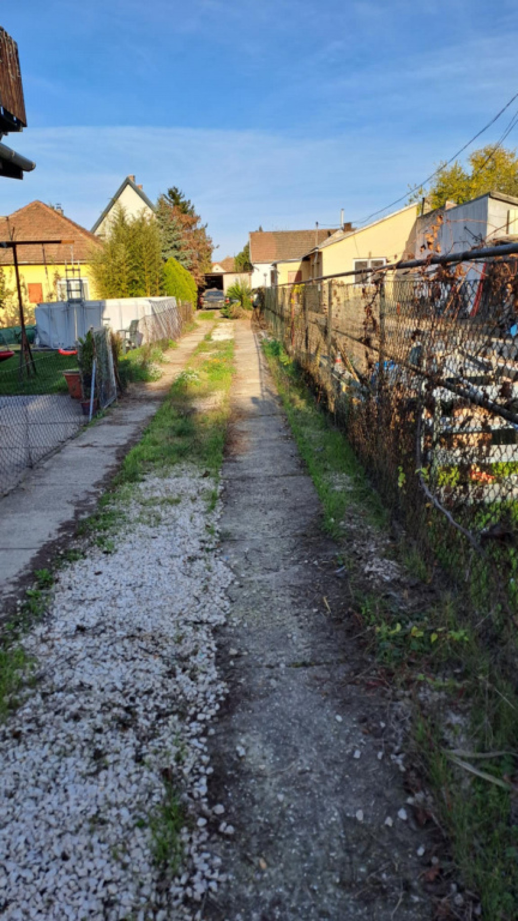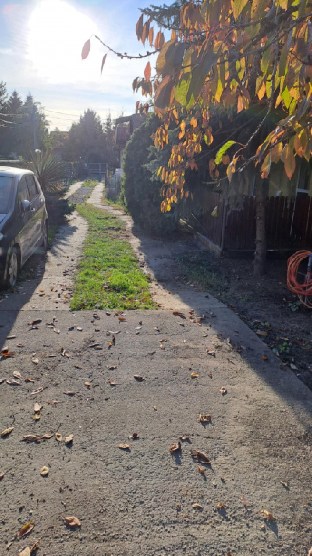 Az ingatlan saját belső úton megközelíthető, így az utcától bentebb helyezkedik el a ház.
