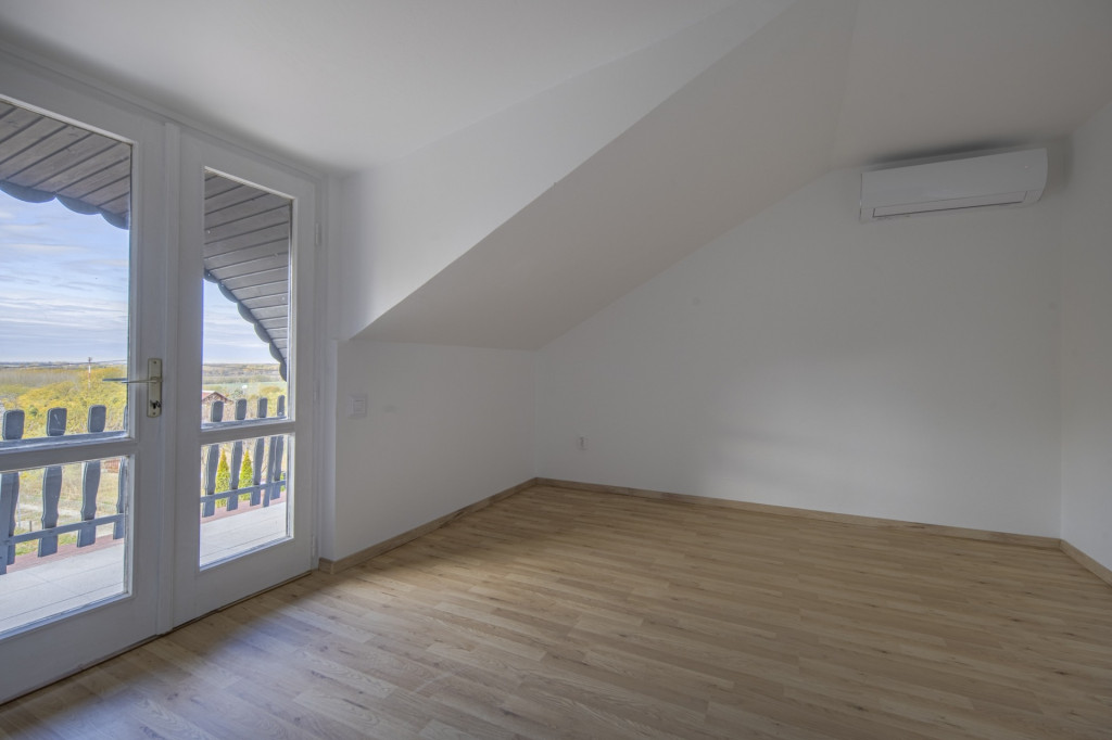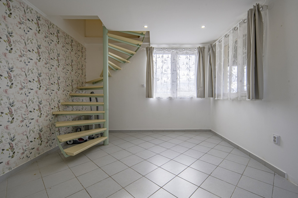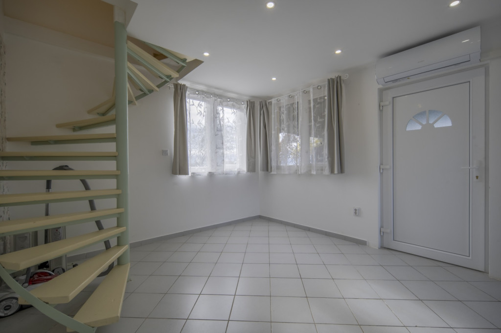 Bruttó 34 m2-es, belső két szintes, 2 szobás, klimatizált, nagy teraszos kertes ház kiadó Ecseren, a Zártkerti dűlőn. A teraszok és a szobaablakok délnyugati fekvésűek, az emelet panorámás. Gáz a telken nincs, a fűtés a földszinten és az emeleten is inverteres klímával van megoldva. Saját víz és villanyóra alapján a fogyasztás egyedileg mért és utólag, számla ellenében fizetendő. A telekre akár 4 autóval is kényelmesen be lehet állni, elektromos kapun keresztül. Bútorozatlan, részben gépesített, maximum 2 ember részére, minimum 1 évre kiadó, 2 havi kaució megfizetése mellett, akár novembertől. A bérleti díj 200 000 Ft.