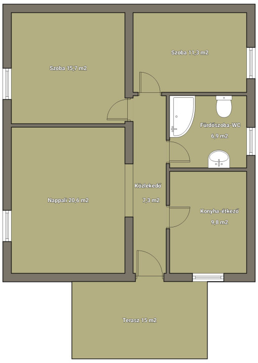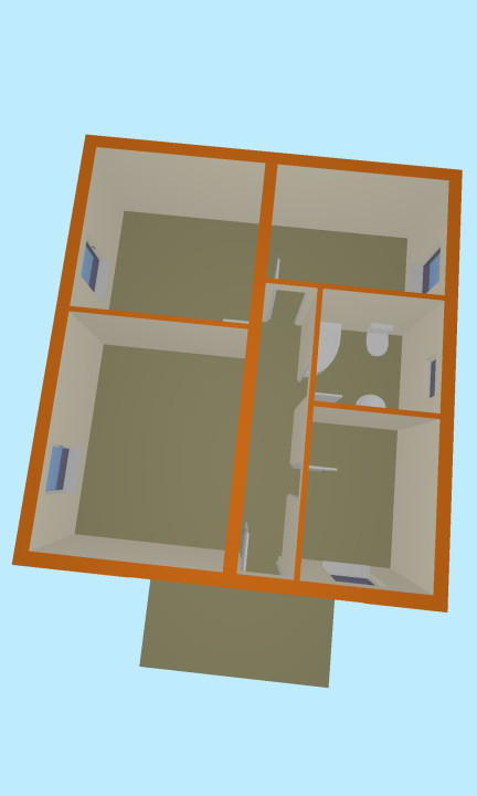 A ház 2 szoba + nappalis, konyha-étkező, fürdőszoba-WC, előszoba helyiségekből áll.