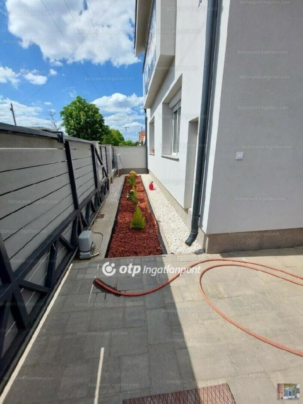 A telek területe: 411 m2, rendezett. Modern kerítés, elektromos úszókapuval.