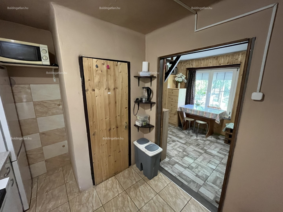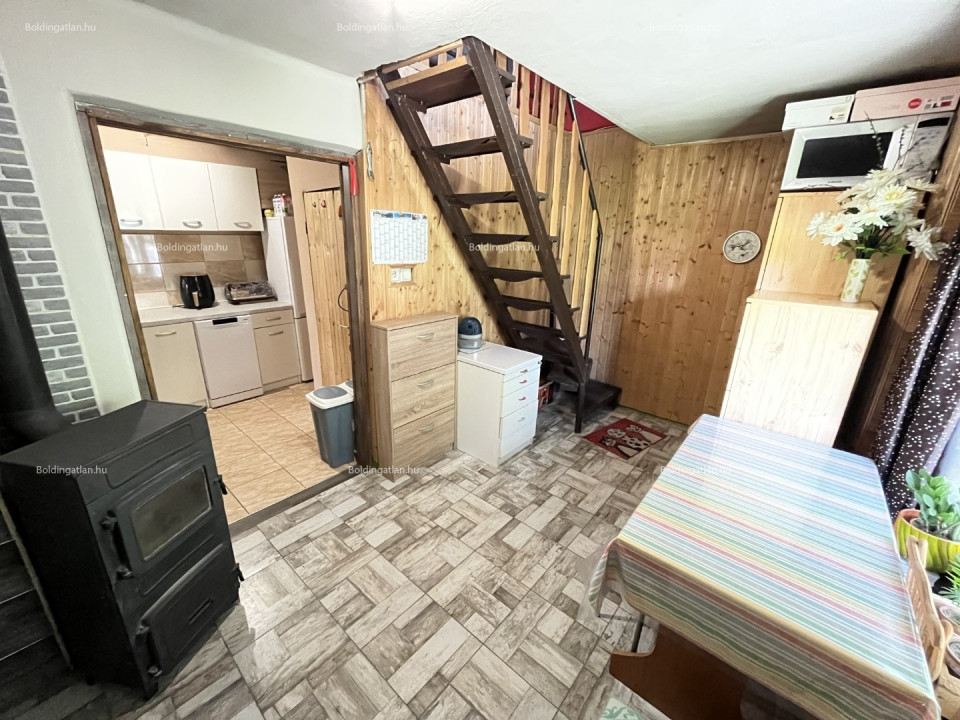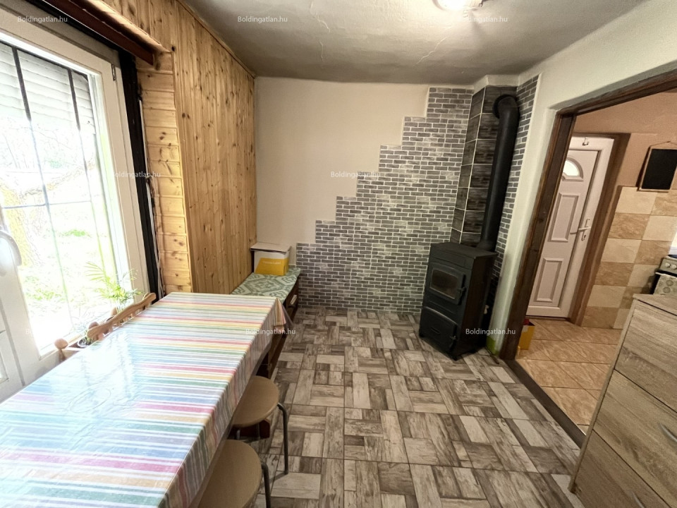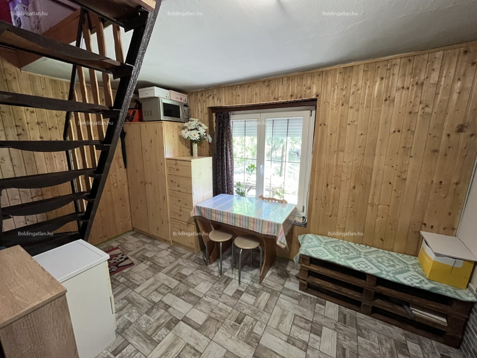 Kaposfüreden a Jutai szőlőhegyen - a vasútállomásnál található - 30 m2-es, akár télen is lakható hétvégi ház kiadó. Az épület földszintjén fedett terasz található, innen nyílik az előszoba-konyha beépített konyhabútorral és mosogatógéppel, fürdőszoba-wc mosógéppel, étkező-nappali, valamint a tetőtérben egy hálószoba került kialakításra. Az épületben a nyílászárók műanyagra lettek kicserélve, a fűtése a nappaliban lévő kandallóval megoldott, a meleg vizet villanybojler biztosítja. A kerítéssel körbekerített udvarban található még tároló, továbbá számos gyümölcsfa is van. Telek: 949 m2