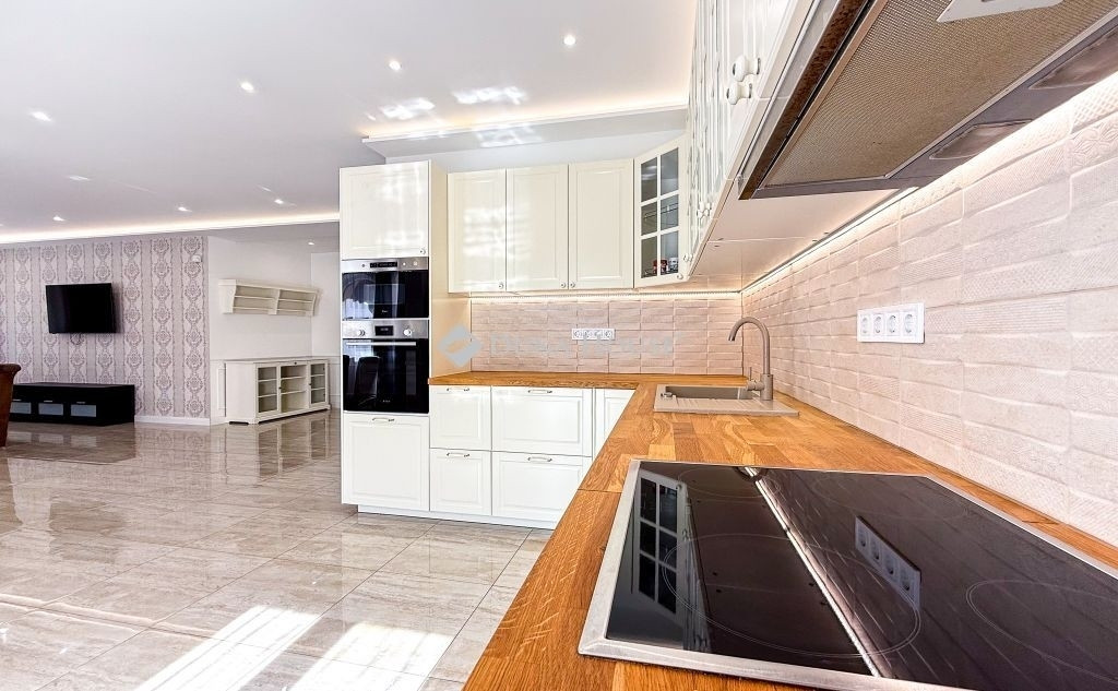 Tágas, reprezentatív nappalikonyhaétkező, ahol egy nagyobb családi vacsora vagy baráti összejövetel is kényelmesen megélhető