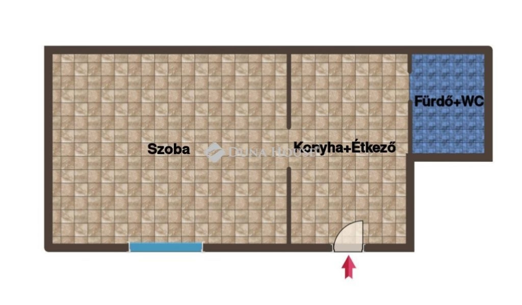 - 22 m2-es lakrész, szoba, konyha + étkező, fürdő + WC