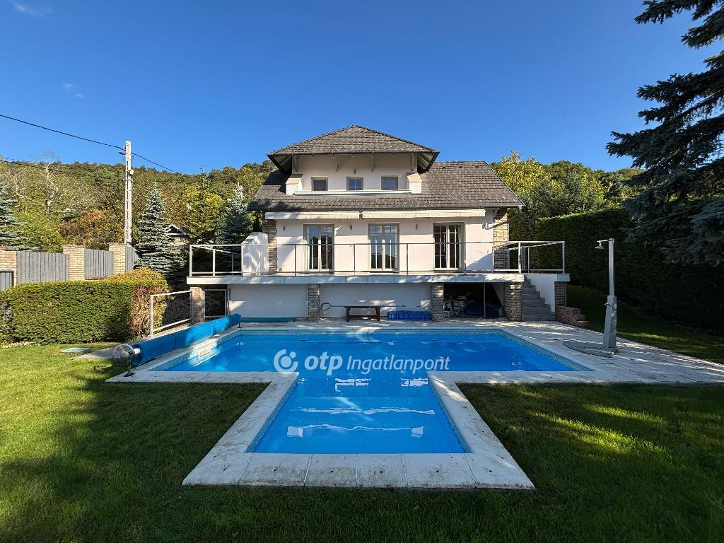Exkluzív, 280 m2-es családi ház a déli domboldalon, 4 hálószobával, kétállásos garázzsal, fűtött medencével, gondozott kerttel és panorámás terasszal.