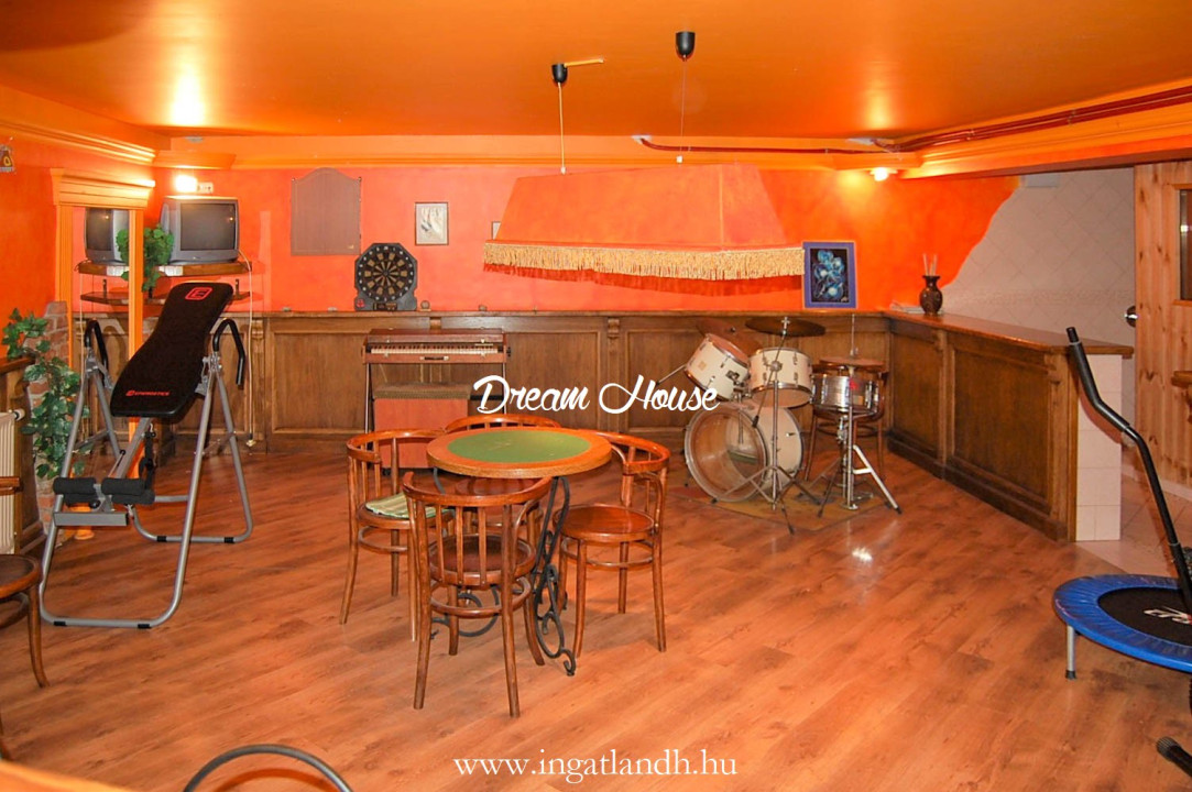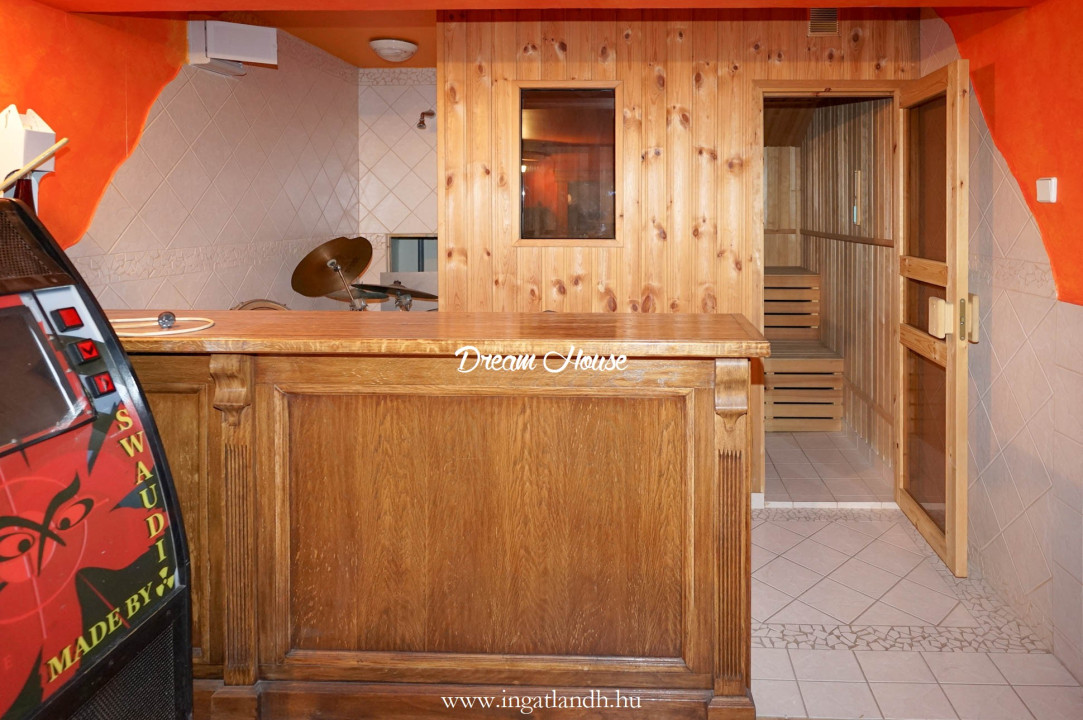 A pincében hangulatos klubhelyiség került kialakításra bárpulttal, szaunával és zuhanyzóval.