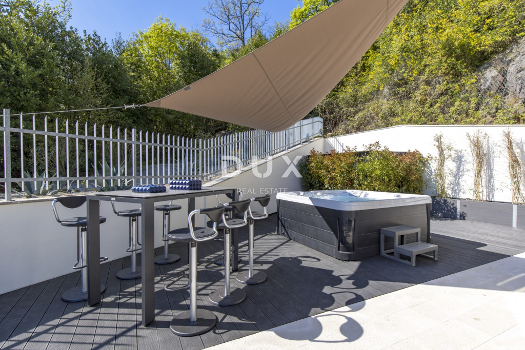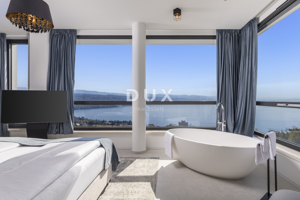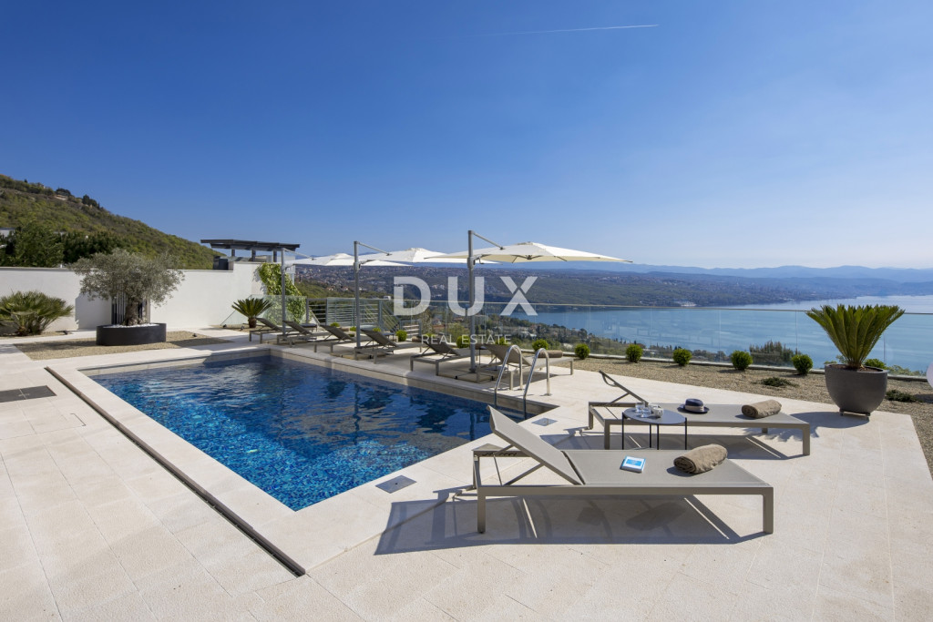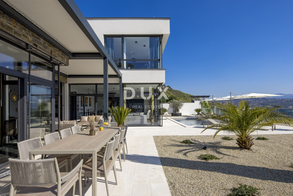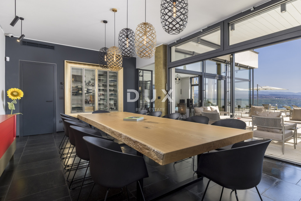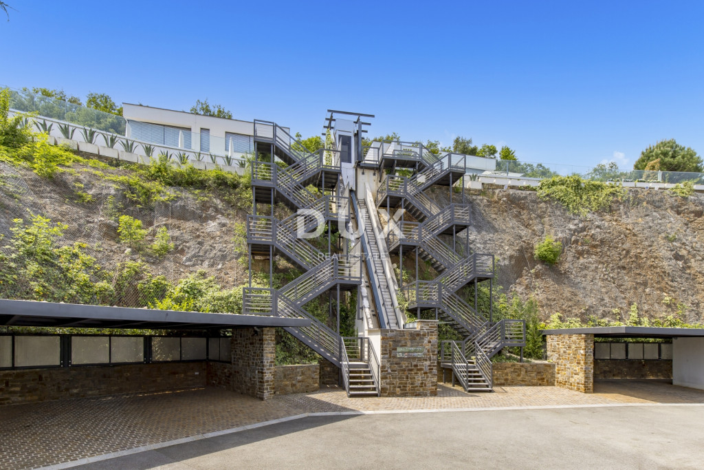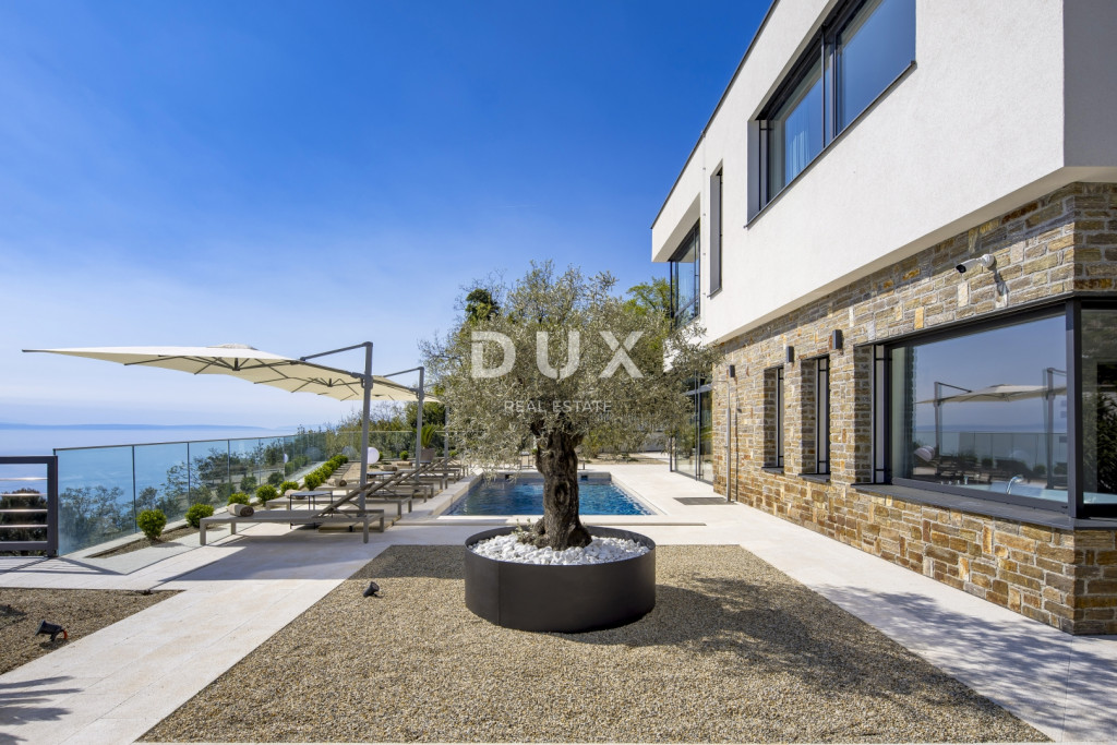 Abbázia központja felett, egy csendes és tekintélyes lakókörnyezetben található egy exkluzív, modern, ötcsillagos villa, amely a luxus, a magánélet és a lenyűgöző panorámás tengerre néző kilátás tökéletes kombinációját kínálja.